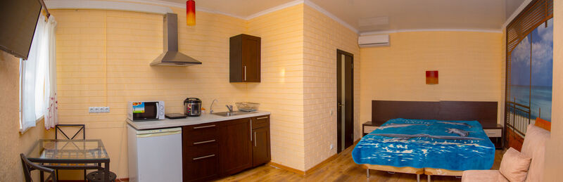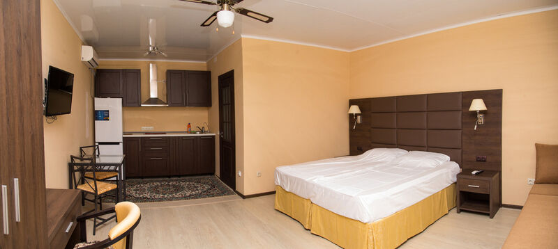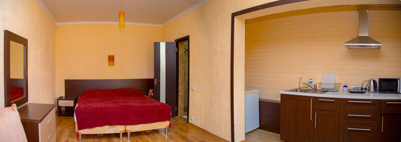 Больше по размеру чем обычный люкс. С кухней, санузлом, с новым ремонтом.