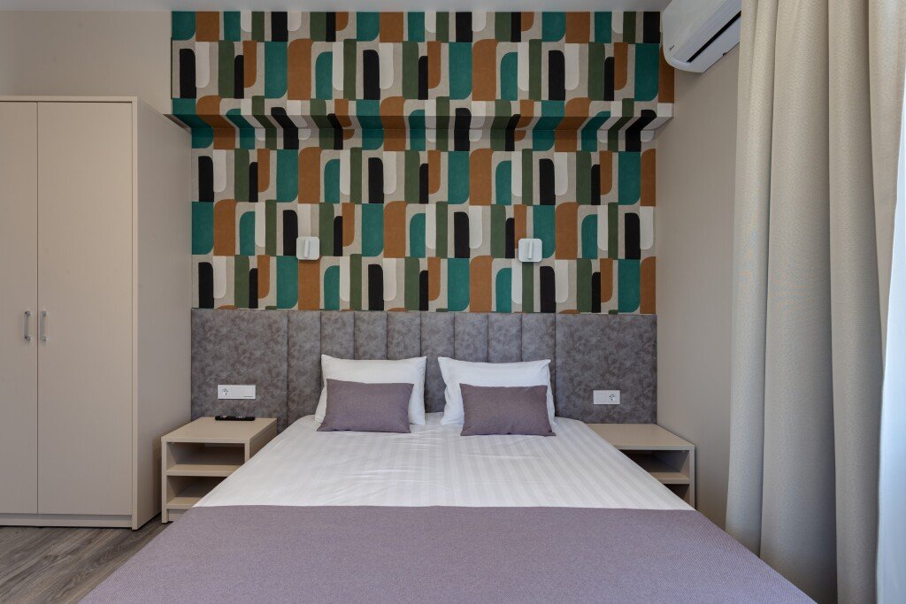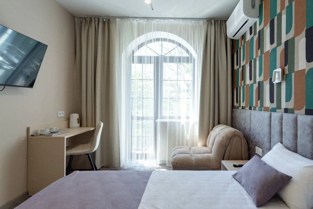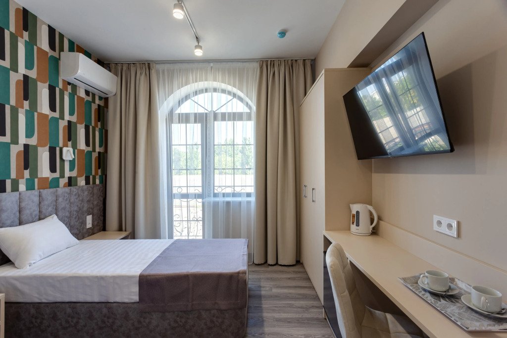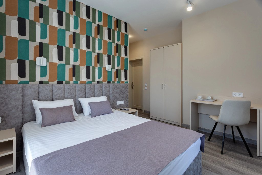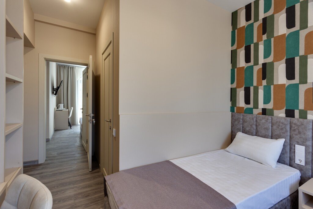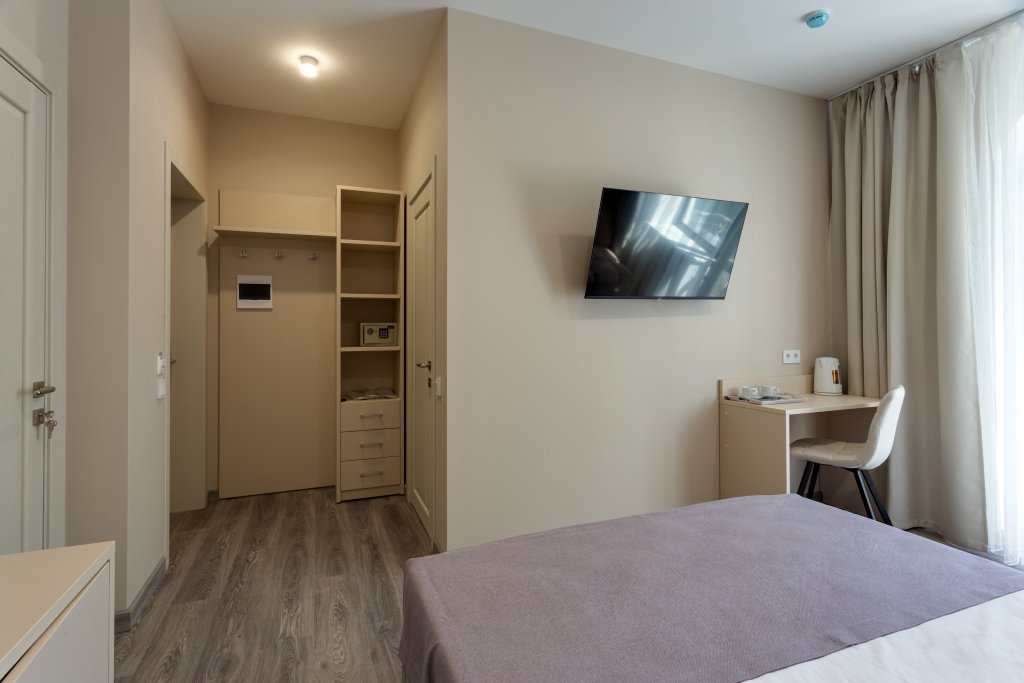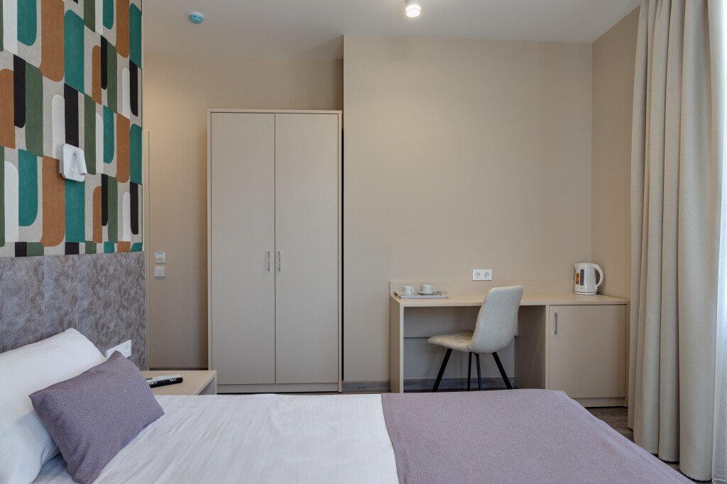 Номер уютно обставлен и оснащён необходимым, чтобы отдохнуть после долгого и насыщенного дня. Имеются телевизор и халат. Перечисленные услуги есть не во всех номерах.