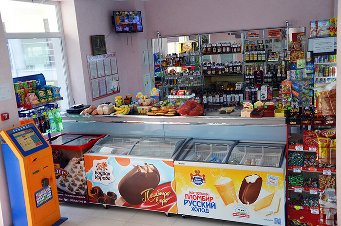 Огромный выбор разнообразных продуктов питания, соки, вода, богатый выбор напитков на любой вкус — все это можно приобрести по достаточно низким ценам в магазине на территории комплекса.