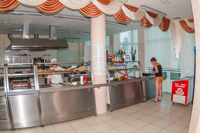 Режим работы: завтрак с 08:00 до 10:00, обед с 13:00 до 15:00, ужин с 17:30 до 20:00.