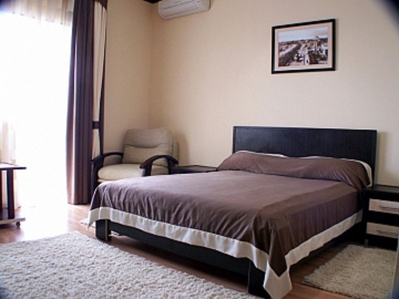 Однокомнатный люкс на 2 человека с двуспальной кроватью, расположен на 5м этаже. Номер рассчитан на 2 человека, доп. место не предусмотрено. Окна с видом на море и на окрестности, без балкона.