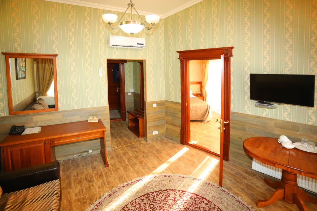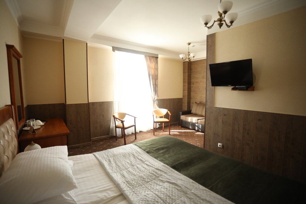 В номере вы найдёте телевизор и халат. Перечисленные услуги есть не во всех номерах.