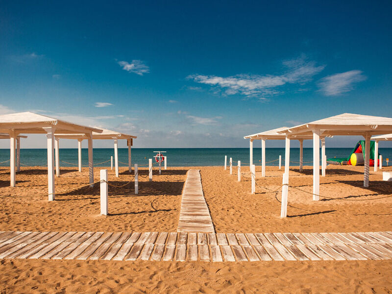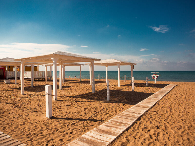 Инфраструктура: лежаки, зонтики, шезлонгиПесчаный пляж
