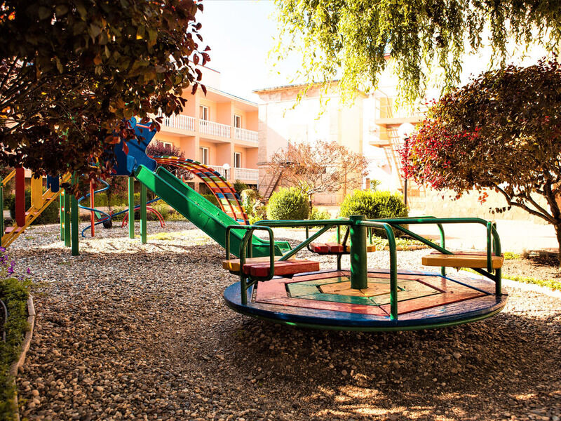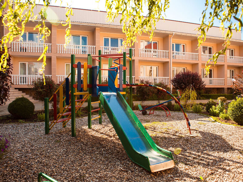 Отель подходит для всех категорий граждан, от юных тусовщиков, до семейных пар. Территория полностью охраняемая и огороженная. По периметру растут зеленые кусты и цветочные клумбы. Между корпусами в тени деревьев находится детская площадка.