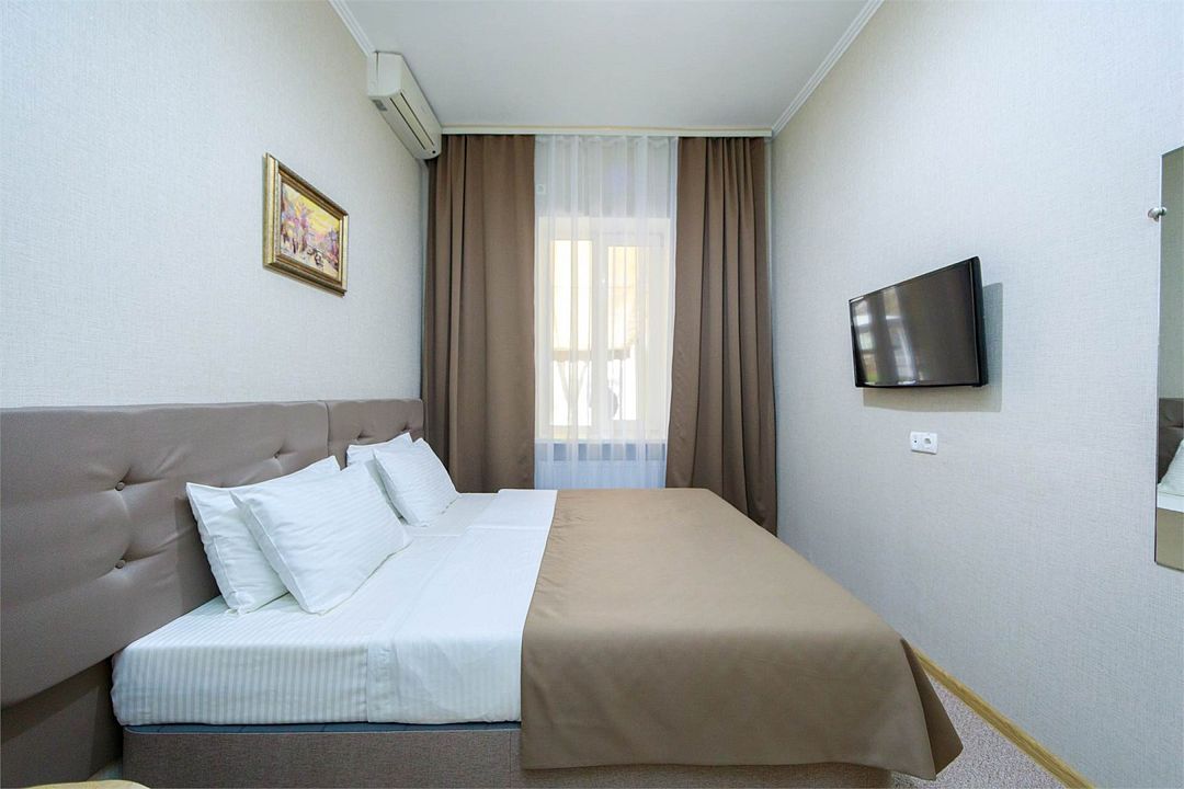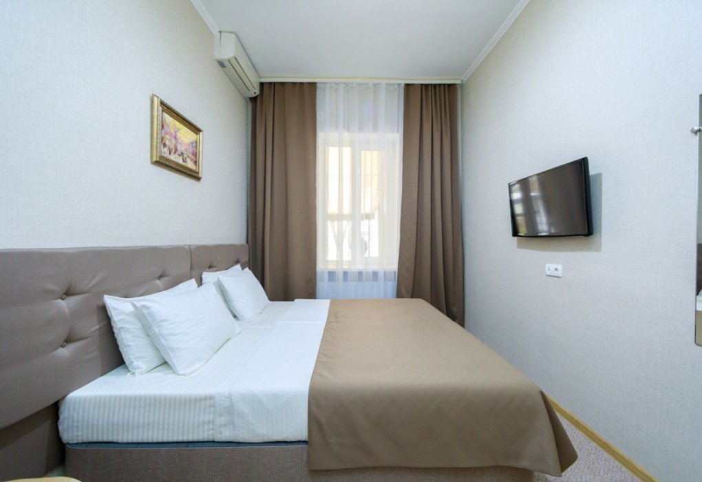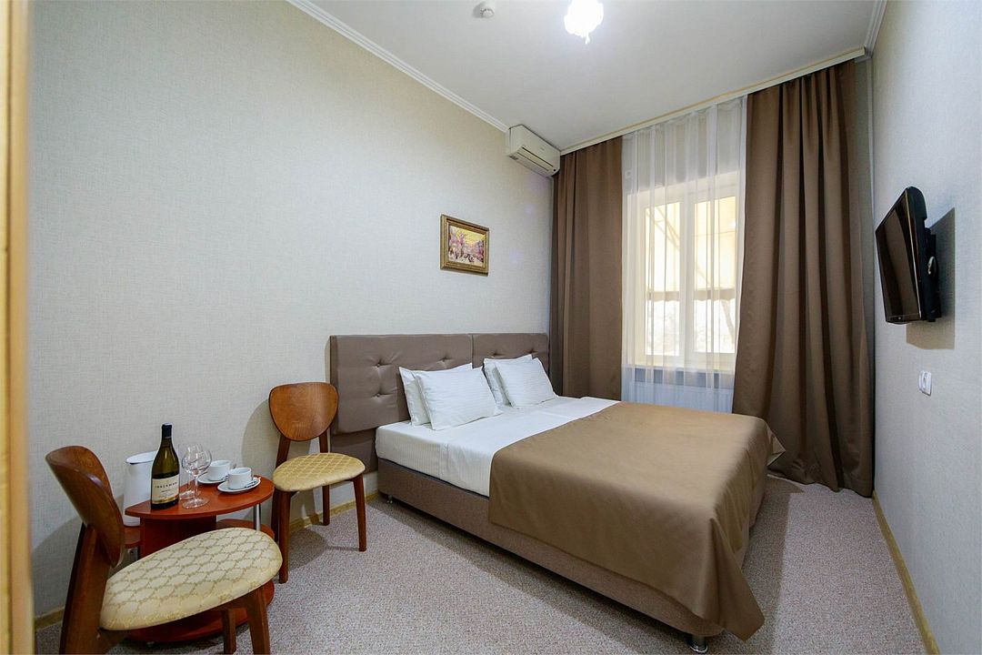 Однокомнатный двухместный номер. Общая площадь: 13-14 м2. В номере: две односпальные кровати с возможностью объединения, журнальный столик, прикроватные тумбочки, кондиционер, холодильник, телевизор, одёжный шкаф, сейф, Wi-Fi. Холодное и горячее водоснабжение круглосуточно. Дополнительное место не предусмотрено. При размещении с маленькими детьми, бесплатно устанавливается детская кроватка. Все номера данной категории расположены на первом этаже с индивидуальным входом.Услуги и удобства