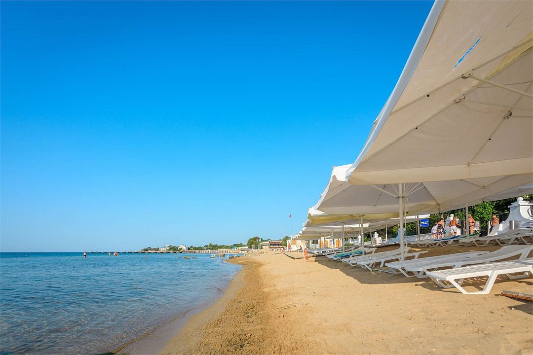 Пансионат расположен всего в 6-8 минутах неторопливой ходьбы от берега моря и центральной набережной им. М. Горького, где находится оборудованный пляж. Пляж, площадью 1500 квадратных метров, позволяет разместить всех гостей, оборудован всем необходимым для комфортного и безопасного отдыха: шезлонги, зонты от солнца, удобные раздевалки, душевые кабины.