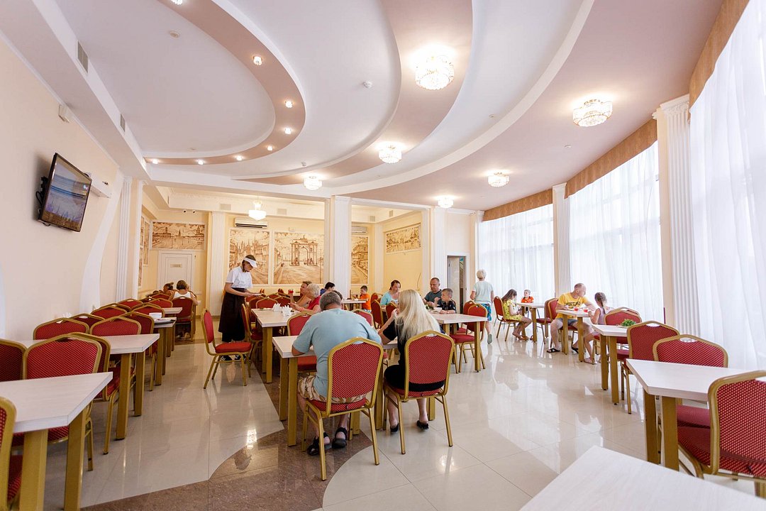 В период действия пакета услуг «Всё включено» с 12 июля по 17 сентября трёхразовое питание по системе «шведский стол» для гостей пансионата «Федор Шаляпин» предоставляется в ресторане отеля «Империя». Также в стоимость в данный период включено промежуточное питание на территории гостиничного комплекса «Империя».