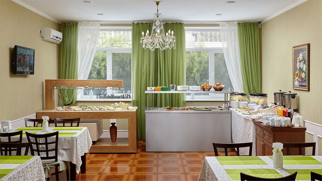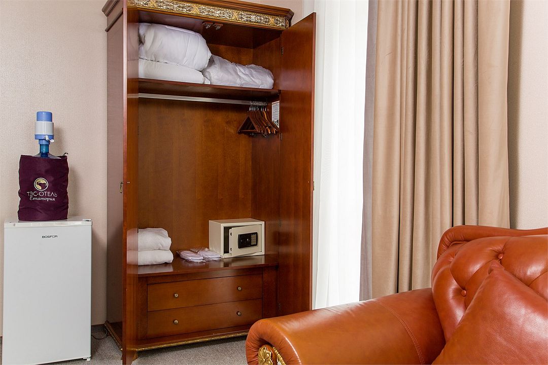 зайн и атмосферу домашнего уюта в новом номере категории "Полулюкс улучшенный"! (Высшая категория "Джуниор сюит") Общая площадь номера составляет более 80 м², что создает ощущение простора и комфорта. Особенности номера: - Две спальни с двуспальными кроватями премиум-класса, оснащенными ортопедическими матрасами для идеального сна. - Два санузла, что добавляет удобства для большой семьи или компании. - Просторный холл, где можно расслабиться и провести время вместе. - Прихожая с отдельной гардеробной комнатой для хранения вещей. TES Hotel Resort & SPA — это не только уютные номера, но и превосходный сервис. К вашим услугам один из лучших двухэтажных СПА-комплексов в Крыму, изысканный ресторан, современный медицинский центр с оборудованием от мировых брендов, зал лечебной физкультуры и, конечно же, дружелюбный и обходительный персонал. Наш отель предлагает гибкую систему тарифов и разнообразные акционные предложения на официальном сайте. Следите за ними, чтобы сделать ваш отдых еще более приятным и выгодным. Мы всегда рады видеть вас и ваших близких в нашем отеле!Услуги и удобства