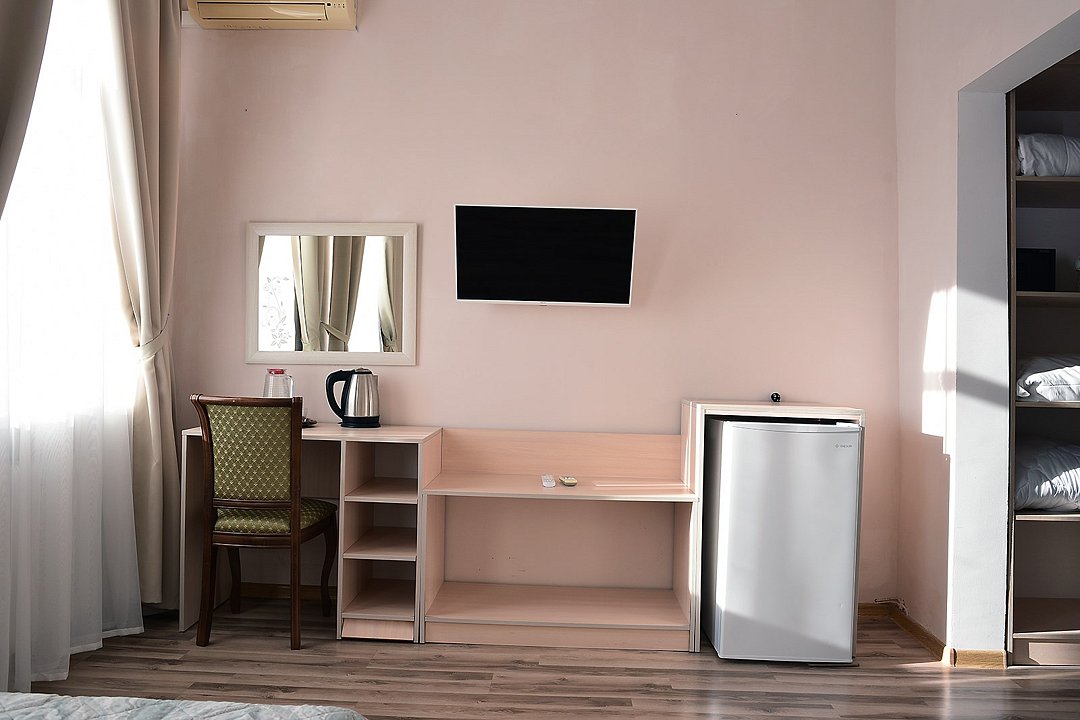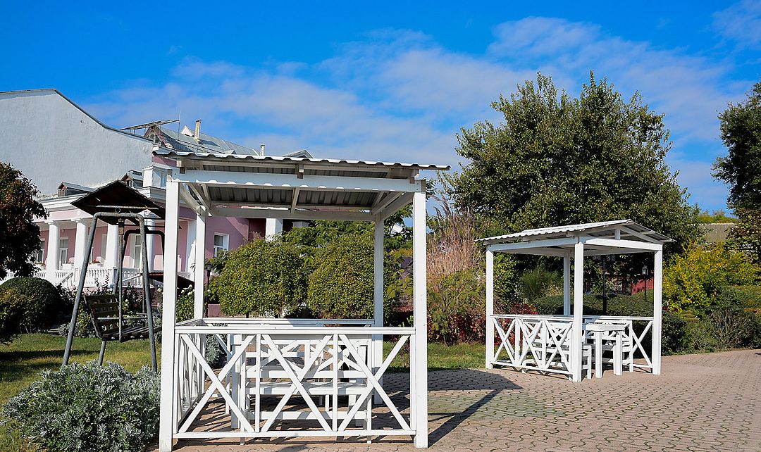 Гостям предлагаются номера с современными удобствами, включая двухуровневые варианты на первом этаже и однокомнатные номера на втором и третьем этажах. Для тех, кто ищет более экономичный вариант, предусмотрен отдельный корпус с номерами эконом-класса. Пансионат предлагает отдыхающим благоустроенную территорию с уютными беседками, площадкой для барбекю и детской игровой зоной — идеальные условия для расслабляющего времяпровождения.