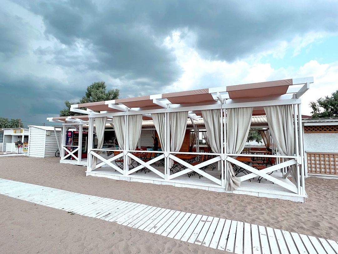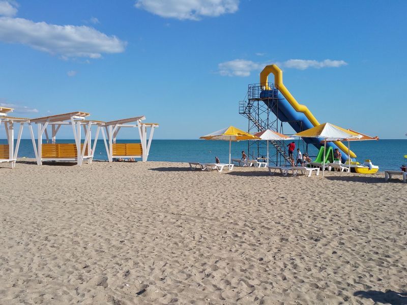 Пансионат располагает благоустроенным пляжем, который находится на Симферопольской улице. Вдоль пляжа установлены зонтики и шезлонги для комфортного отдыха гостей. Если вы предпочитаете не идти пешком, вы можете добраться до пляжа на маршрутке №6 или трамвае №4.