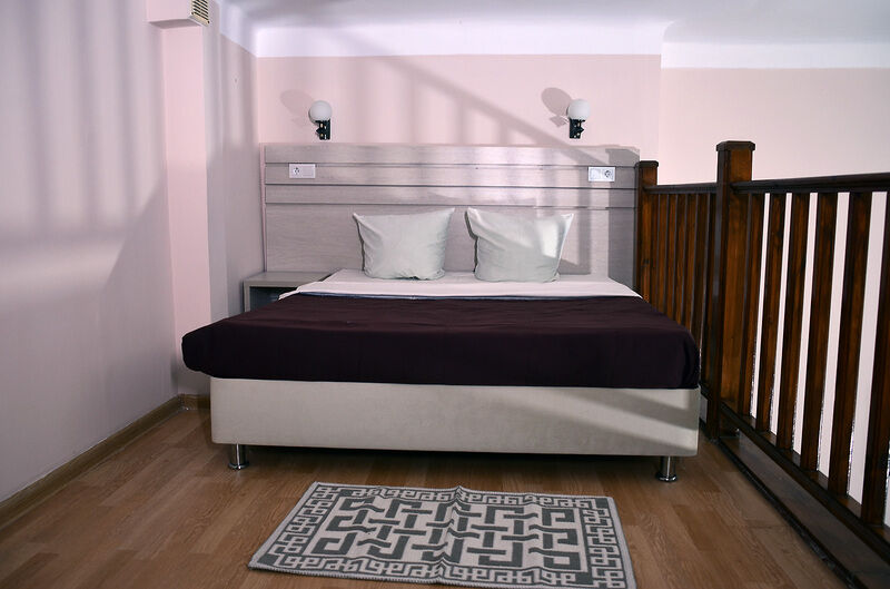 Номер у нас был двухуровневый с террасой с видом во двор. Номер 5, вроде. Для троих размер маловат и лестница крутая, лишний раз не побегаешь по ней, но у нас пожилых и детей нет, поэтому не критично.