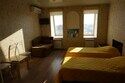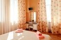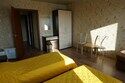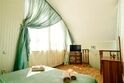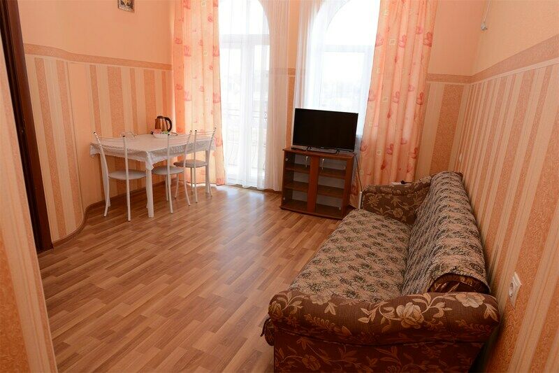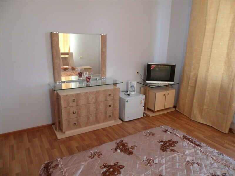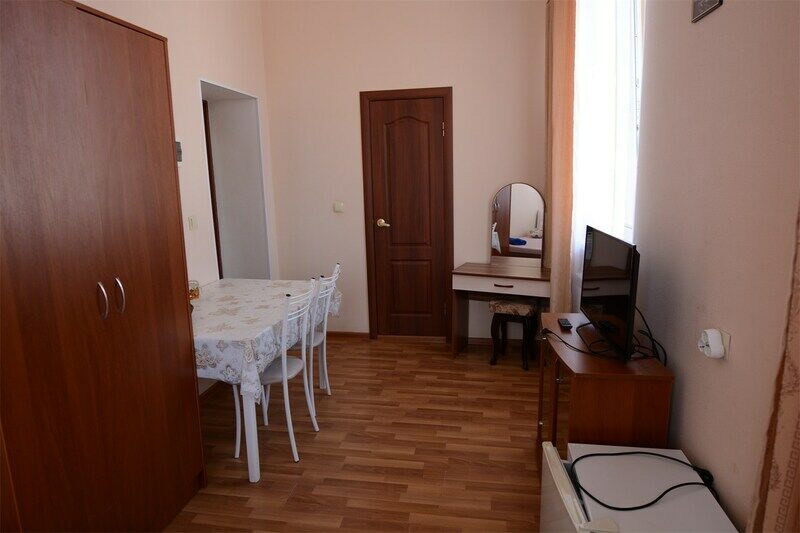 Сам гостевой дом представляет из себя трехэтажное здание, которое разместилось на первой береговой линии всего в 50 метрах от побережья. В распоряжении гостей однокомнатные и двухкомнатные номера с удобствами. Везде есть индивидуальный душ, санузел, установлена сплит-система, имеется бытовая техника – электрочайник, телевизор, фен, холодильник. Из окон некоторых комнат открывается вид на морской горизонт.