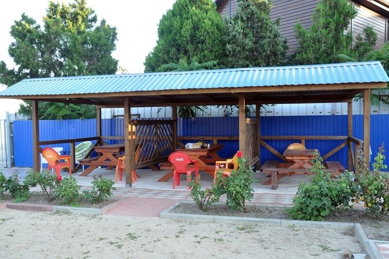 На прилегающей территории работают водные аттракционы, кафе, магазины. Есть большой открытый бассейн, ухоженная зеленая территория для прогулок, утопающая в розах. Можно заказать такси до вокзала. Туристический сезон длится с 1 мая по 30 сентября.