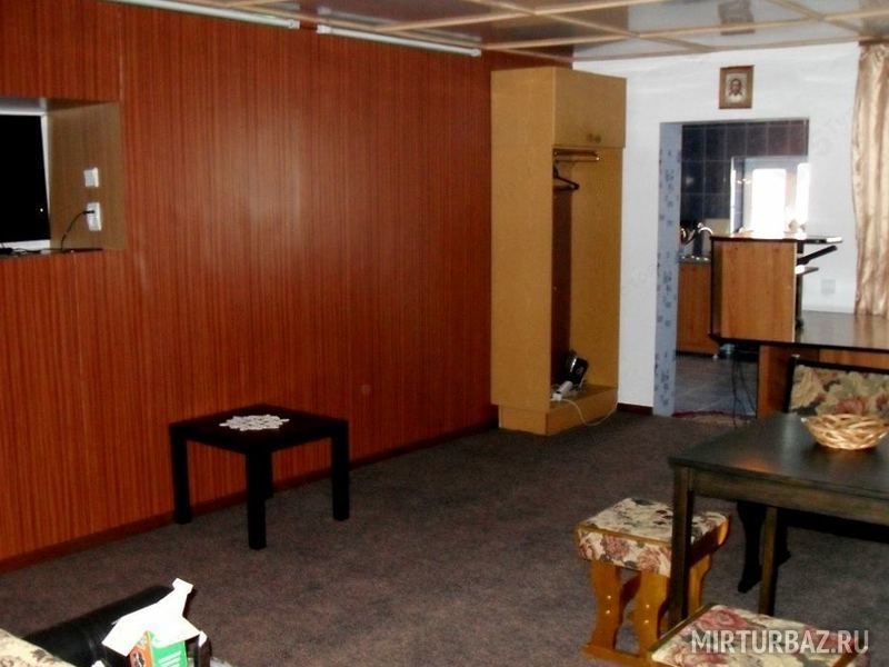 В номере: двуспальная кровать, диван, шкаф, стол, утюг, стиральная машина, сплит-система, телевизор, Wi-Fi, кухня со всем необходимым; санузел и душ.
