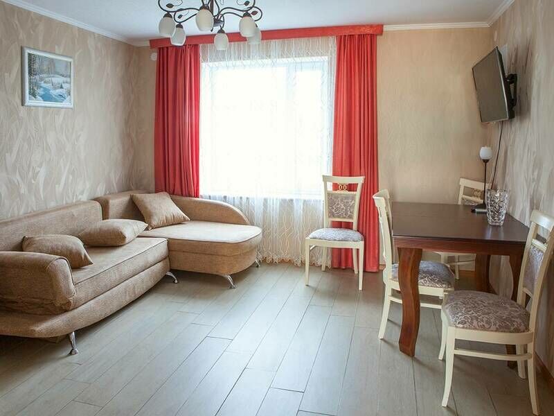 Комплекс принимает гостей круглый год, начиная с достаточно далекого 2005 года. Он может одновременно вместить 112 человек. Здание состоит из трех этажей. Его планировка современная. Также есть два корпуса, которые состоят из двух этажей. Выполнены они из бруса. Гости могут заселиться в невероятно комфортабельные номера, которые оборудованы всем необходимым для отличного отдыха. Это холодная и горячая вода, кондиционер, телевизор, холодильник, интернет.