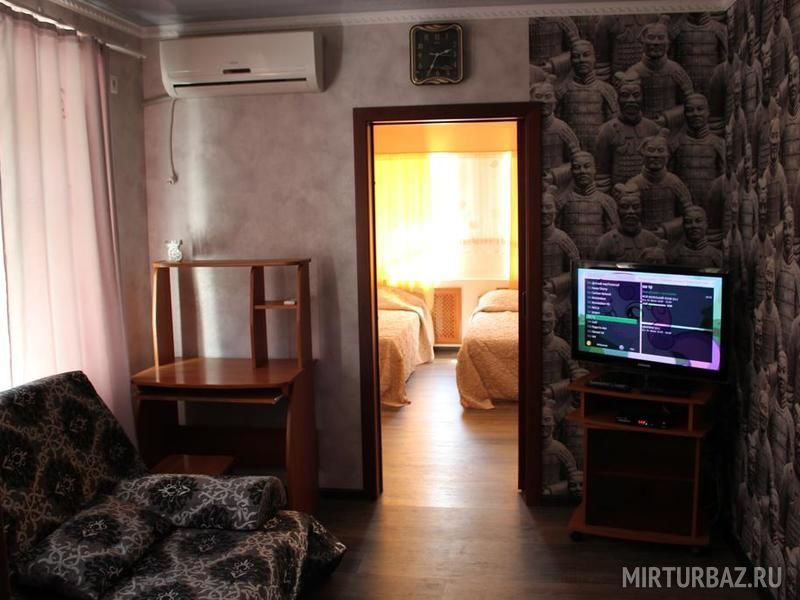Всего в 5 минутах ходьбы от апартаментов находится пляж Ейского лимана, а железнодорожный вокзал - в 10 минутах пешком.