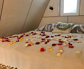 Украшение дома к вашему приезду, сервировка стола, украшение лепестками роз или воздушными шариками.