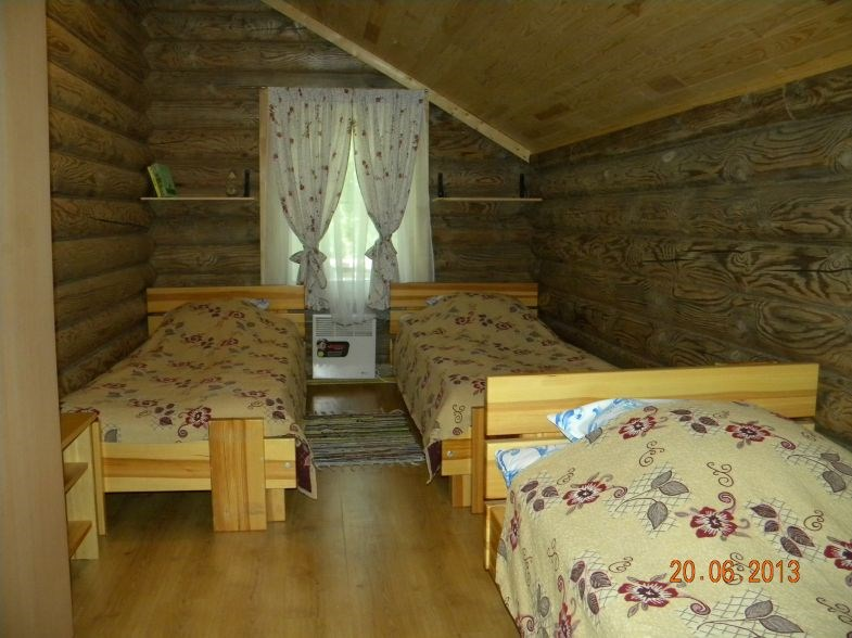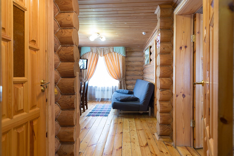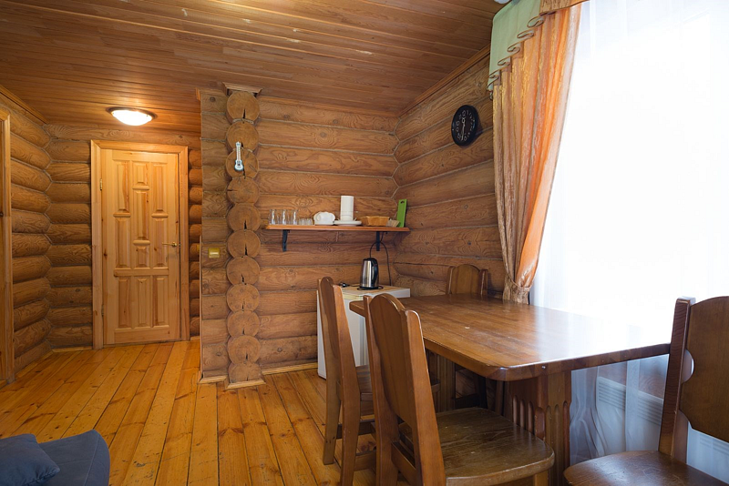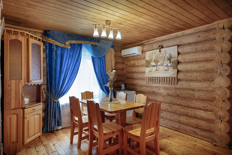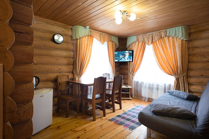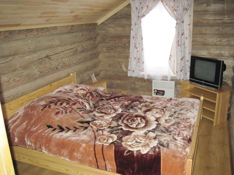 Терем — двухэтажный коттедж, площадью 61 кв.м., из оцилиндрованного бревна, отапливаемый. 2 отдельные спальни позволят комфортно разместиться компании из 5-и человек. В одной спальне — 1 двухспальная кровать, во второй — три 1,5 спальные кровати, в гостиной — диван, который позволит разместиться дополнительно ещё 2-м гостям. Рядом с домом расположена уютная, большая беседка с навесом, для вас и ваших гостей.