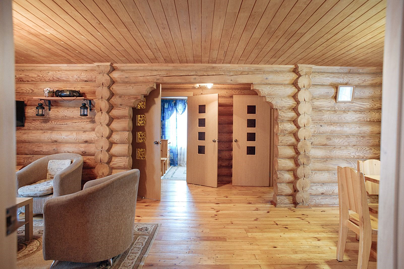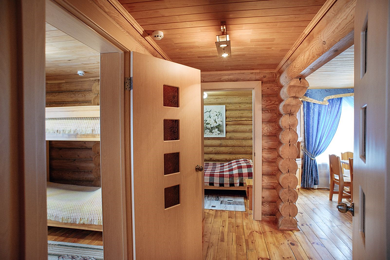 В уютных деревянных домиках есть всё необходимое для отдыха: душ, туалет, спальни и гостиные. Для романтиков есть специальный домик с одной комнатой, оформленный в романтическом стиле.