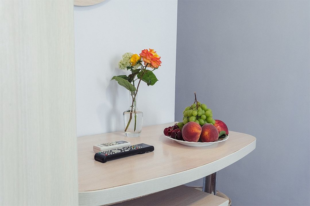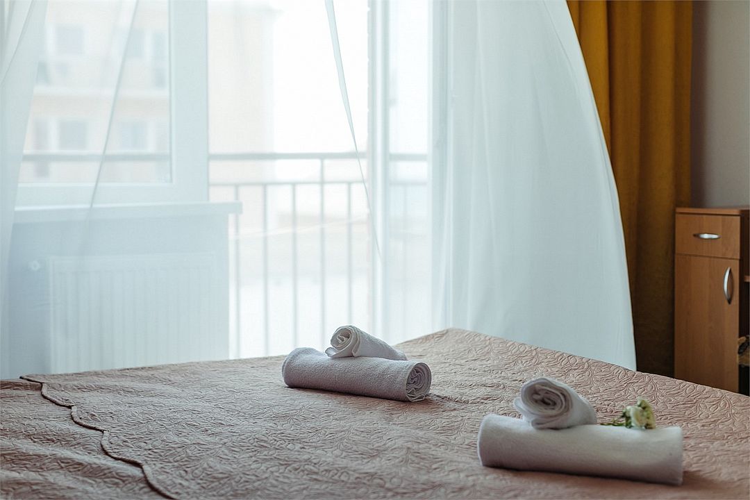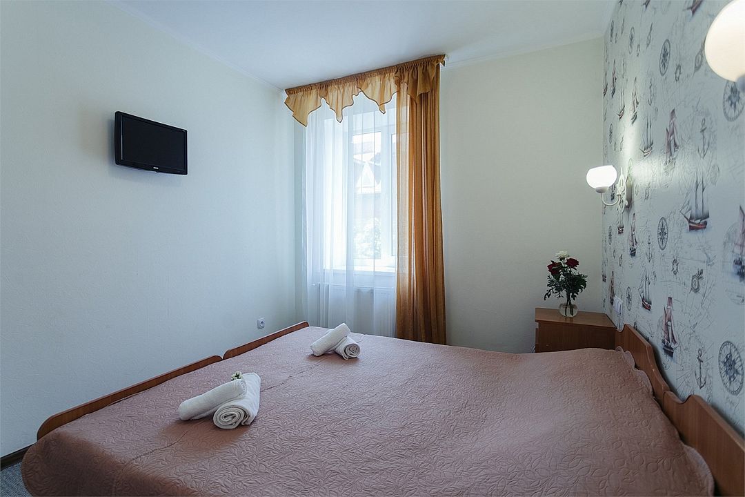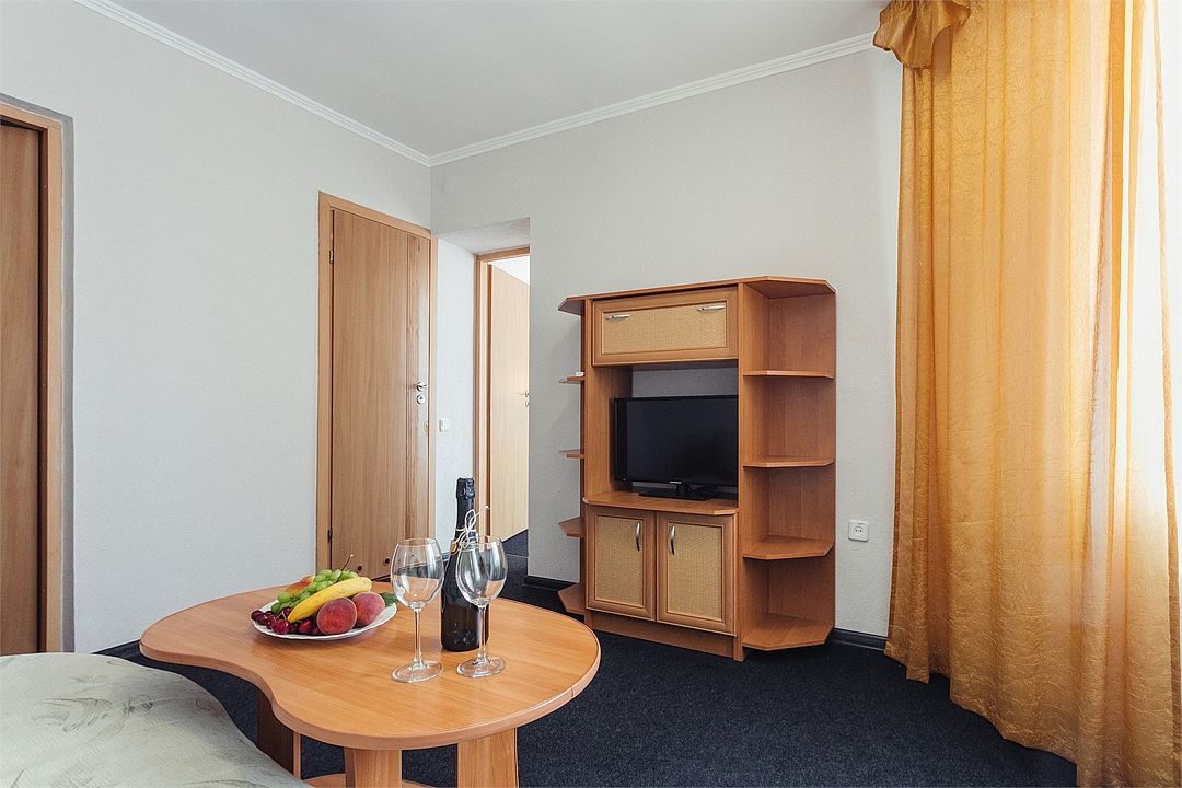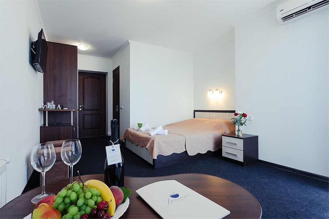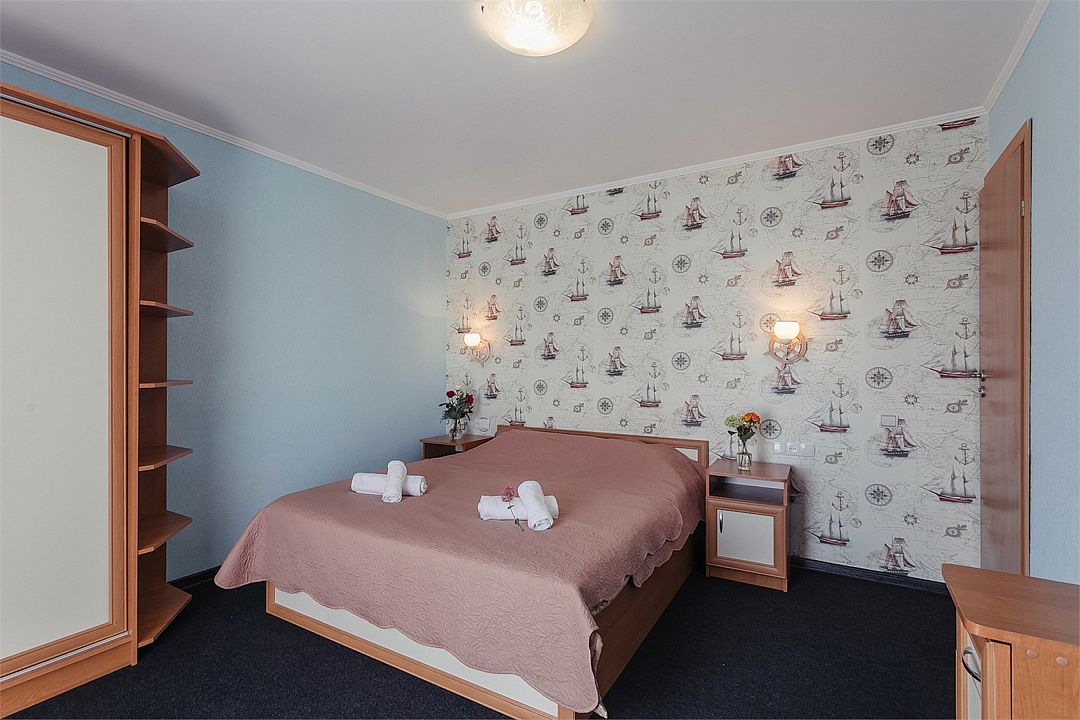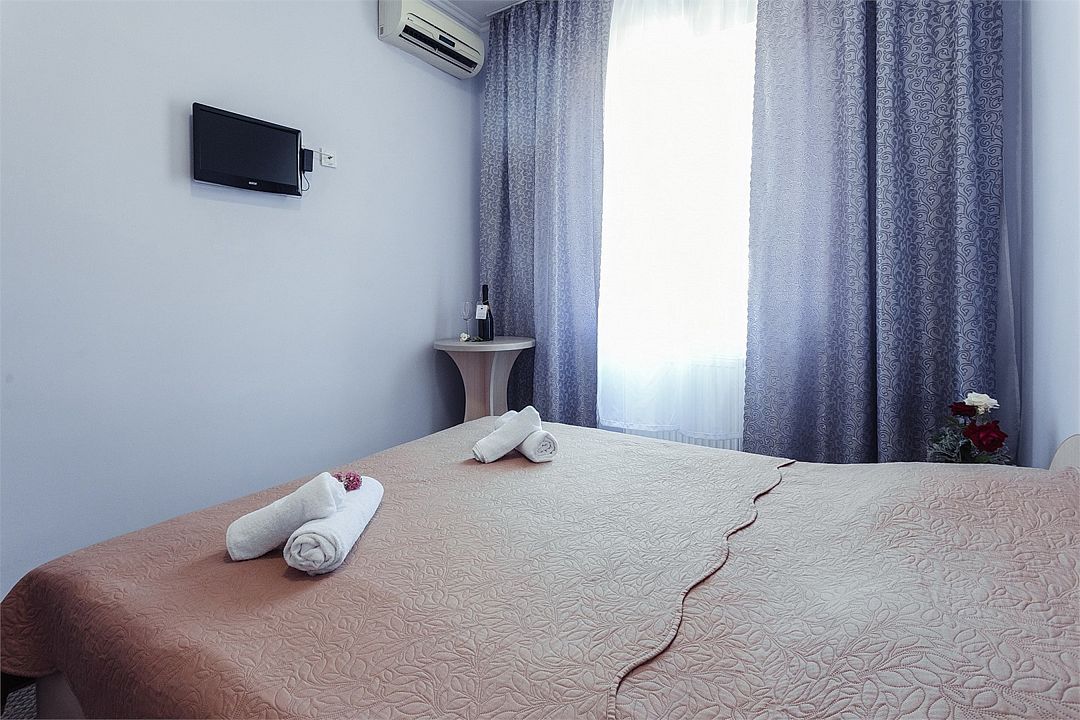 Однокомнатный комфортный номер площадью 16-18 м² с панорамным видом на море/город и уютным балконом прекрасно подойдет для размещения трёх взрослых или семейной пары с ребенком. Номер оснащен удобной двуспальной кроватью с комфортным матрасом (кровать- трансформер, при необходимости можем сделать две отдельные - укажите это при бронировании). Так же предусмотрено дополнительное место в виде раскладного кресла или небольшого дивана. Для вашего удобства в номере есть гардеробный шкаф, прикроватные тумбочки, стул, журнальный стол, телевизор, мини-холодильник, чайная станция набор (чайник, чай/кофе/сахар/шоколад, чашки, стаканы), вешалка настенная. В ванной комнате установлена душевая кабина, есть фен, полотенцесушитель, комплект косметических принадлежностей, набор полотенец. На каждом этаже есть кулер и гладильная зона, за дополнительную плату вещи можно сдать в прачечную. Обращаем внимание, что размеры и дизайн номеров могут варьироваться - представленные фотографии не соответствует каждому номеру данной категории.Услуги и удобства