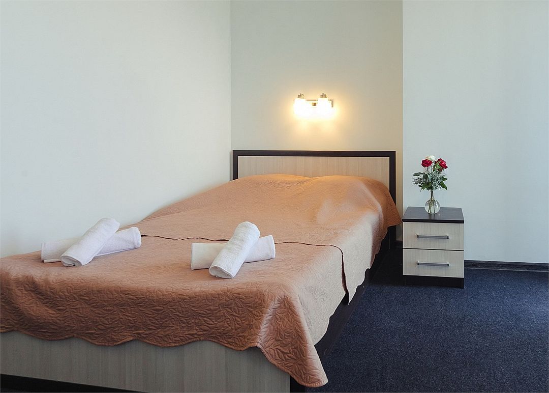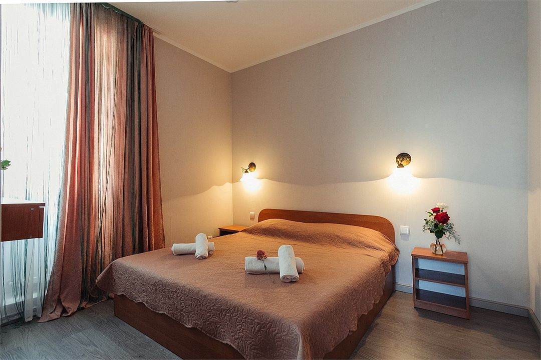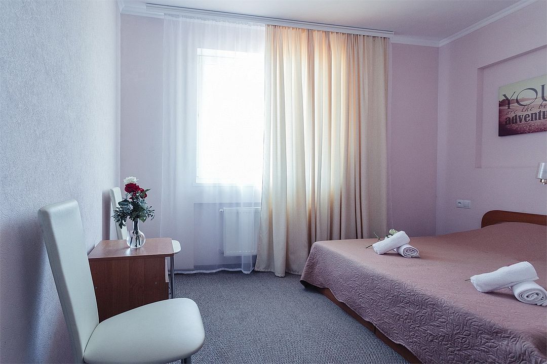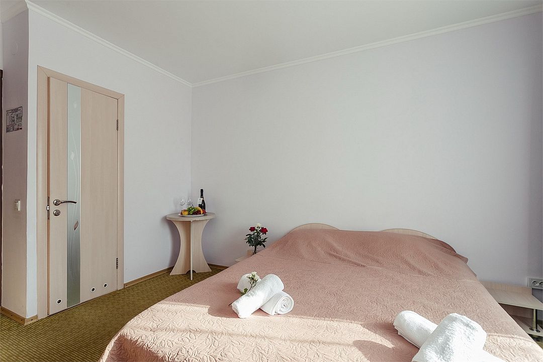 Однокомнатный уютный номер общей площадью 14-17 м² прекрасно подойдет для размещения трёх взрослых или семейной пары с ребенком. Номер оснащен удобной двуспальной кроватью с комфортным матрасом (кровать- трансформер, при необходимости можем сделать две отдельные - укажите это при бронировании). Так же предусмотрено дополнительное место в виде раскладного кресла или небольшого дивана (о наличии уточняйте при бронировании). Для вашего удобства в номере есть гардеробный шкаф, прикроватные тумбочки, стул, журнальный стол, телевизор, мини-холодильник, чайная станция набор (чайник, чай/кофе/сахар/шоколад, чашки, стаканы), вешалка настенная. В ванной комнате установлена душевая кабина, есть фен, полотенцесушитель, комплект косметических принадлежностей, набор полотенец. На каждом этаже есть кулер и гладильная зона, за дополнительную плату вещи можно сдать в прачечную. Обращаем внимание, что размеры и дизайн номеров могут варьироваться - представленные фотографии не соответствует каждому номеру данной категории.Услуги и удобства
