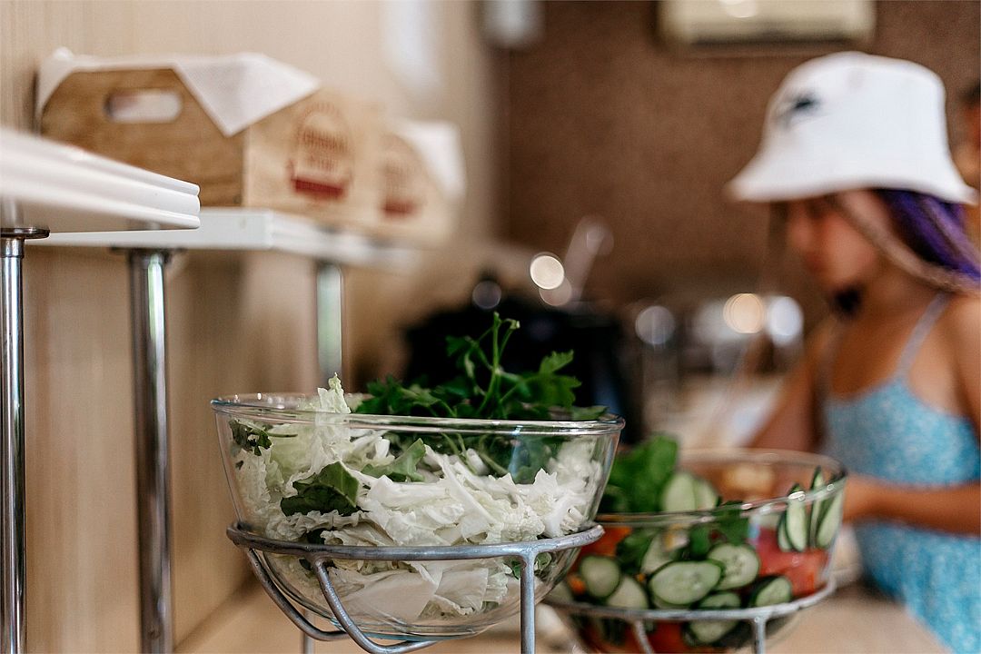 - Питание "Полный пансион" (завтрак 8:30-10:30, обед 13:00-15:00, ужин 18:00-20:00) по системе «шведский стол» в кафе «Веранда»;