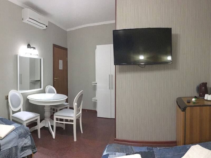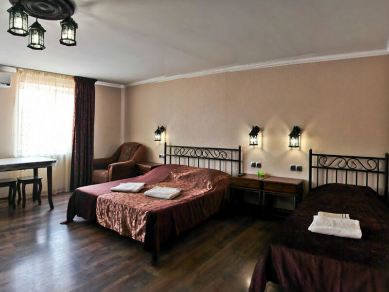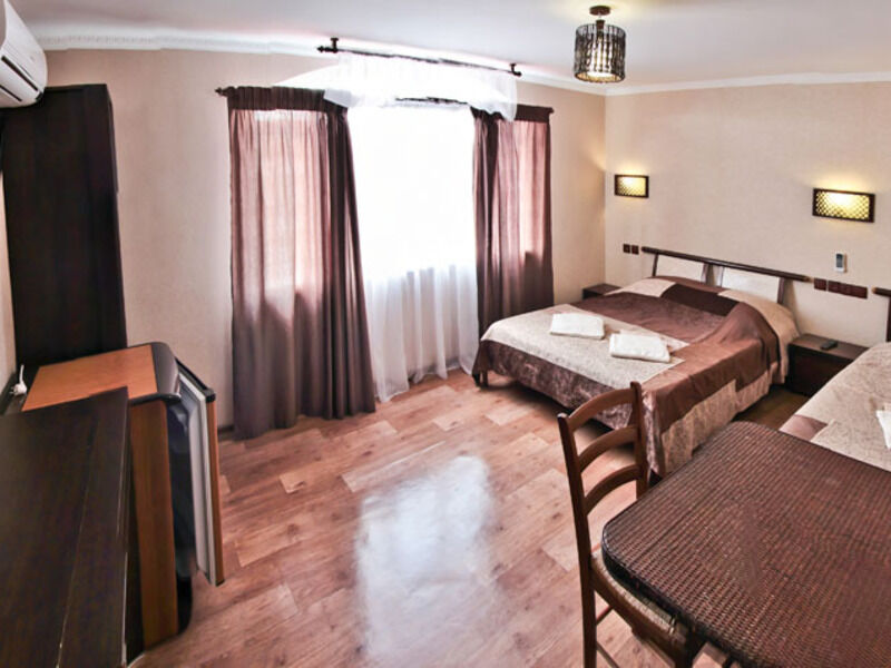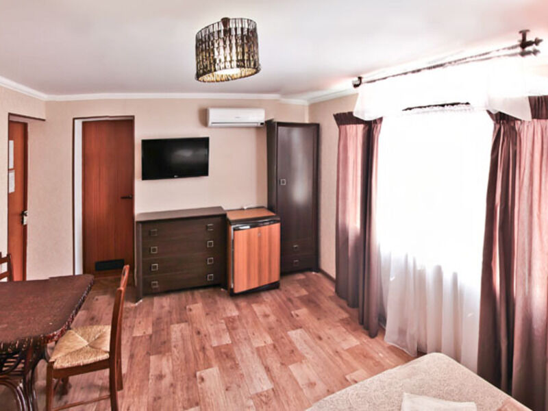 Отель состоит из трех корпусов, расположившихся на уютной закрытой территории площадью 7000 кв.м. Всего в гостевом доме двадцать комфортабельных номеров, в которых могут разместиться до шестидесяти отдыхающих.Постояльцев ожидают двух-, трех и четырехместные апартаменты, часть из них оснащена кухней. Все номера имеют стильный дизайн и укомплектованы кондиционерами, телевизорами, в ванных комнатах для гостей приготовлены косметические принадлежности.