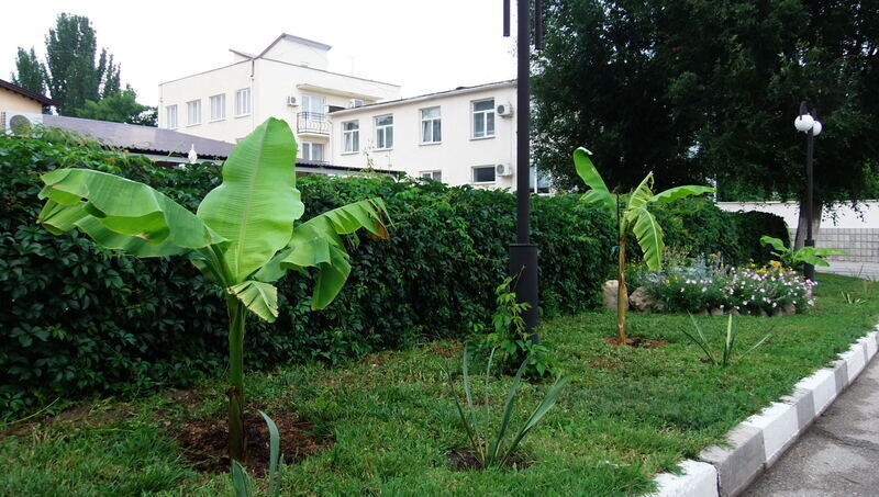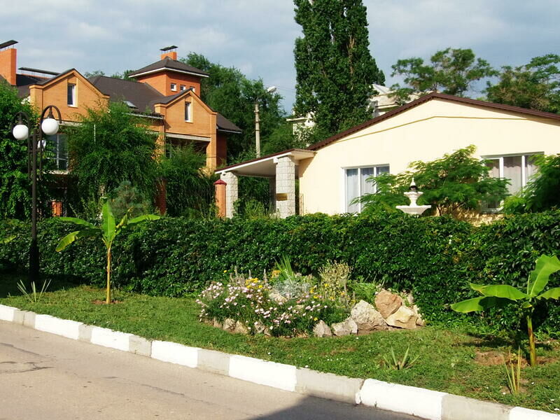 Белоснежные цветы гибискусов являются изюминкой пансионата, а березовая аллея, единственная в городе Феодосия, привлекает внимание всех туристов, приехавших в город.