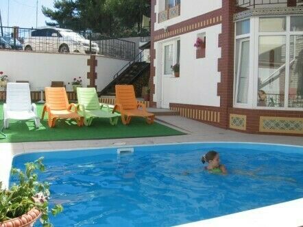 Гостевой дом расположен в трех минутах ходьбы от пляжа и набережной. На территории есть кафе с летней площадкой, где приятно посидеть вечером, отдыхая от дневной жары, бассейн, который особо понравится любителям активного образа жизни, мангал для приготовления шашлыка.