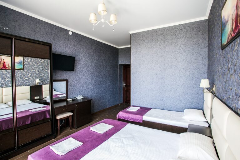 Отель«Gold» - это современный трехэтажный отель с бассейном, расположенный всего в 150 метрах от Золотого пляжа в Феодосии.