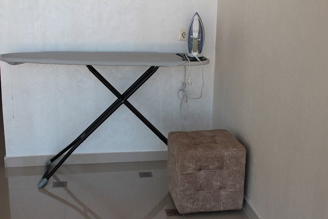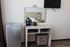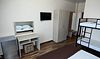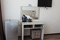 Имеется телевизор, кондиционер, шкаф, вешалка, рабочий стол, посуда, столовые приборы, электрический чайник, холодильник, стулья.