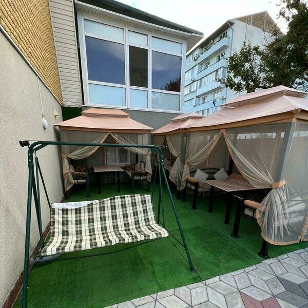 Семейный отдыхДостоинстваДействительность соответствует фотографиям в интернете. Хозяин Антон – обходительный молодой человек. Нам даже предоставили скидку за своевременную бронь. Номер порадовал свежим ремонтом, оформлением. На территории гостевого дома располагается кафе, где быстро обслуживают, предлагают разнообразные блюда. Все вкусно. Дорога к пляжу недолгая, проходит через магазины и парк.