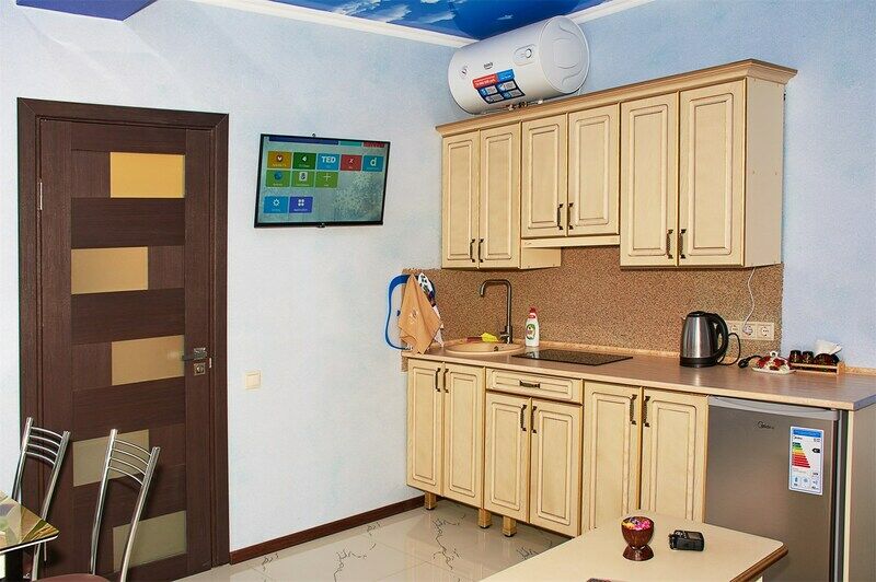 1. на первом этаже гостиная с полноценной кухней в которой имеется телевизор, кондиционер, шкаф,