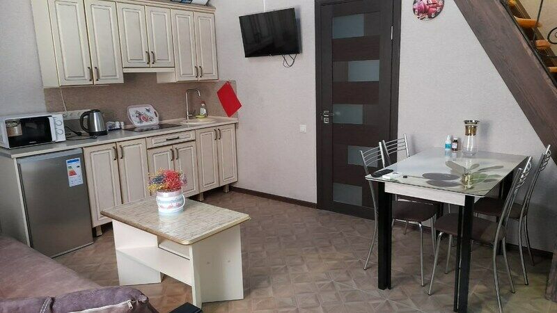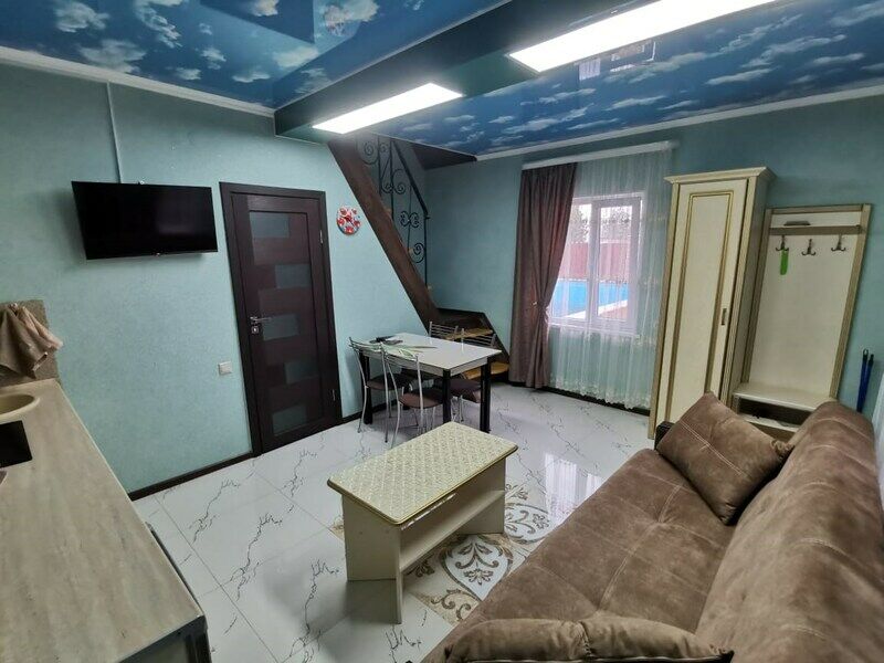 На территории гостевого дома, для удобства постояльцев, оборудованы места для отдыха беседками, садовыми качелями и шезлонгами, а уютный дворик и открытый бассейн, не только порадуют Вас, но и спасут от летнего зноя. Для желающих попариться, имеется сауна (вмещает до 6 человек). Маленьких постояльцев гостевого дома ждет детская площадка с множеством игр и развлечений. В домиках и прилегающей к ним территории работает безлимитный Wi-Fi интернет. Любителям шашлычка - мангал и шампуры. А также в каждом коттедже есть кухни со всем необходимым для самостоятельного приготовления пищи. Туристам прибывшим к нам на отдых на личном авто предоставляется место на парковке.