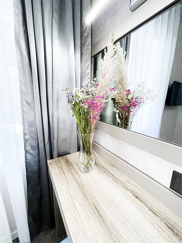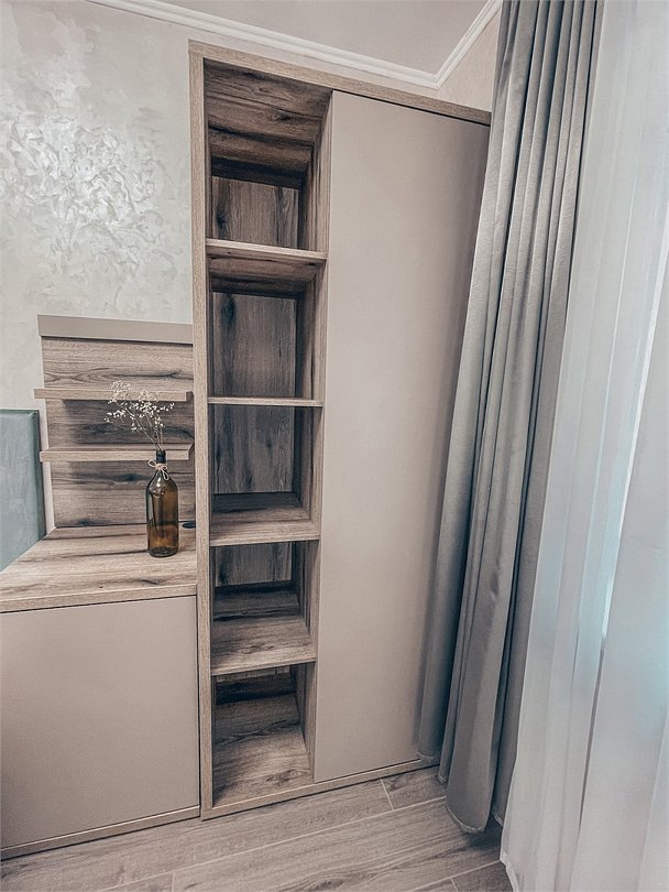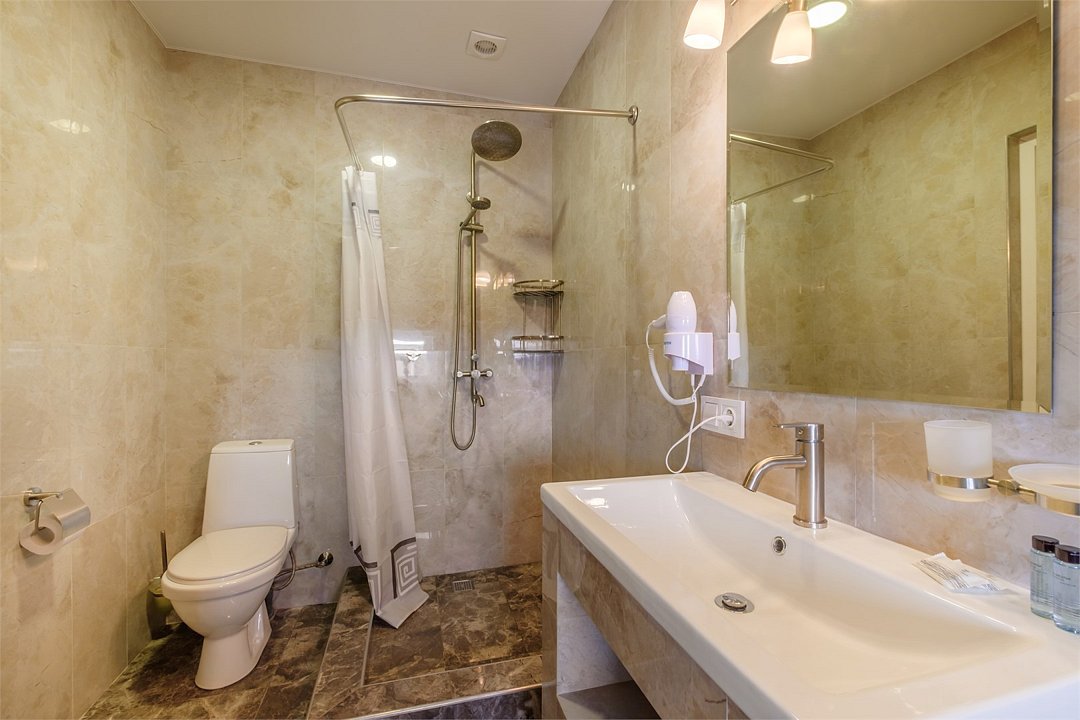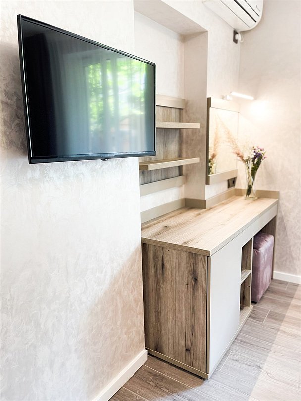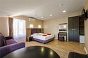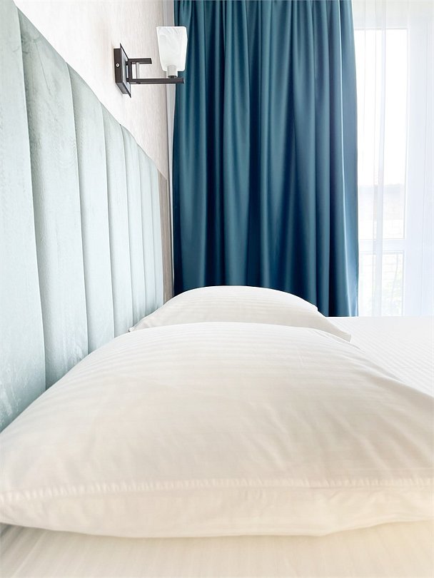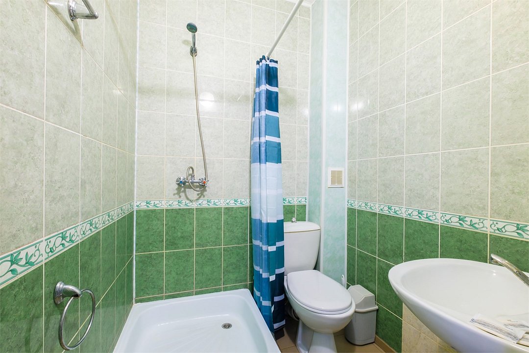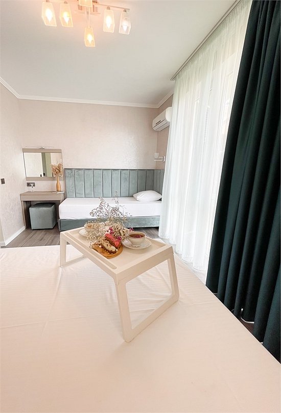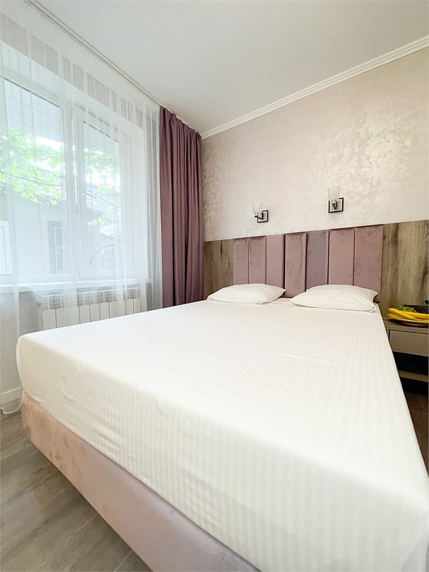 Однокомнатный номер с балконом и без, средней площадью 25-35 кв.м., санузел совмещенный в номере. Мебель в номере: двуспальная и односпальная кровати (или диван 2х спальный), прикроватные тумбы, шкаф, туалетный столик с пуфом, стол столовый с мини кухней (уточняйте), обувница с зеркалом и другая мебель. Техника: кондиционер, холодильник, телевизор, чайник, микроволновая печь, фен, стиральная машина (уточняйте о наличии конкретной техники). Так же в номере присутствуют: подушки и одеяла, постельное белье, полотенца на каждого человека по 2 шт., посуда, набор косметики для душа и т.д.Услуги и удобства