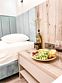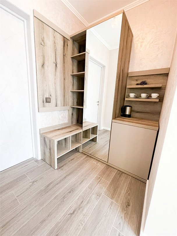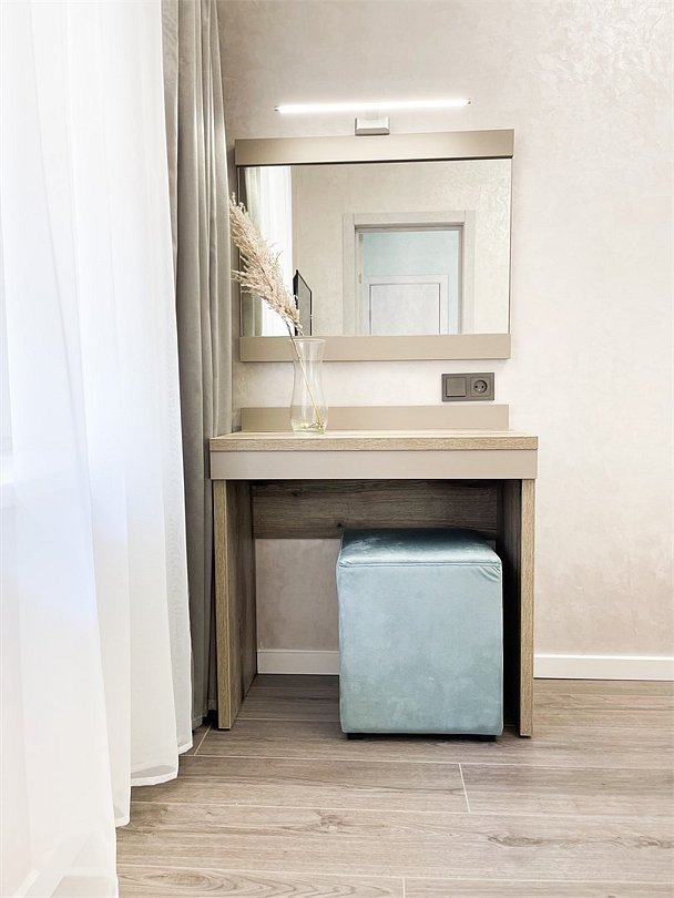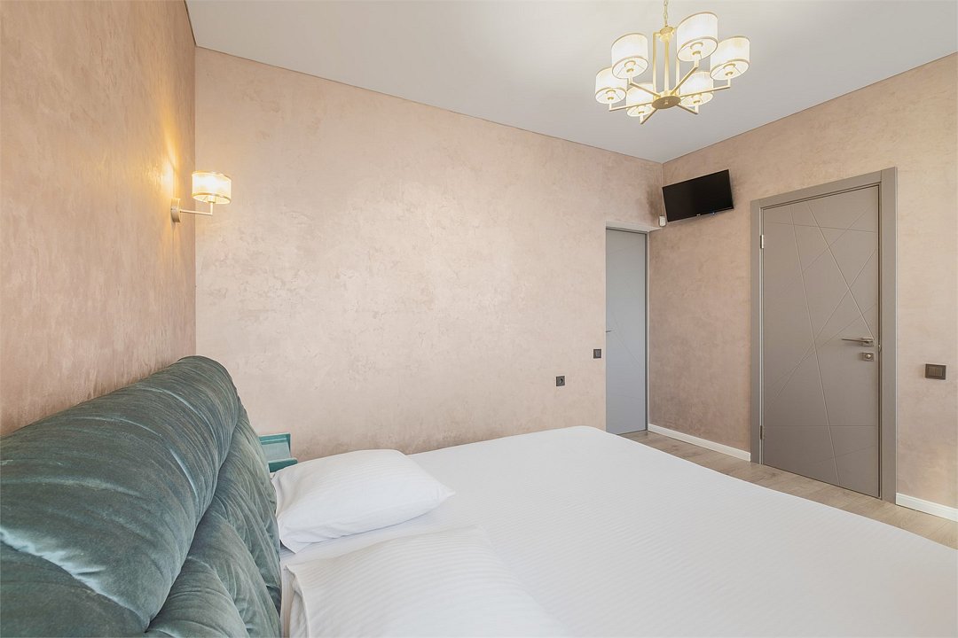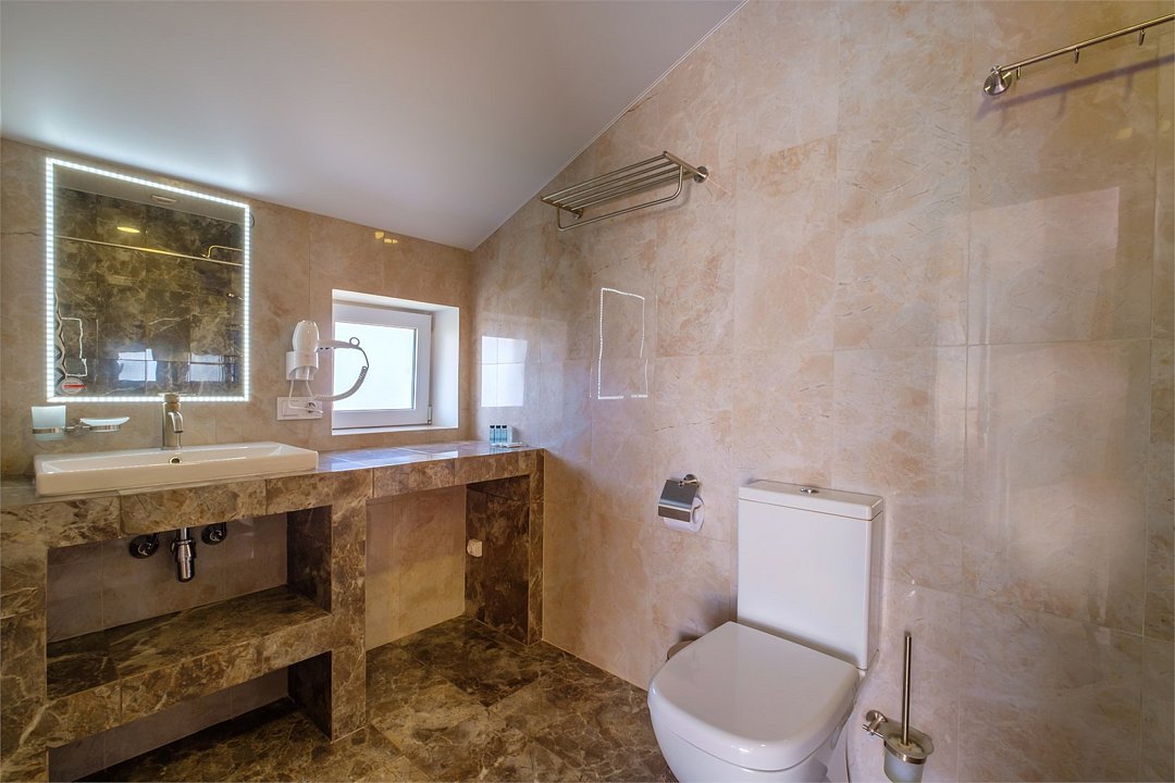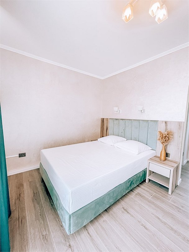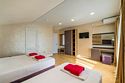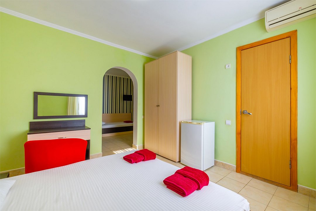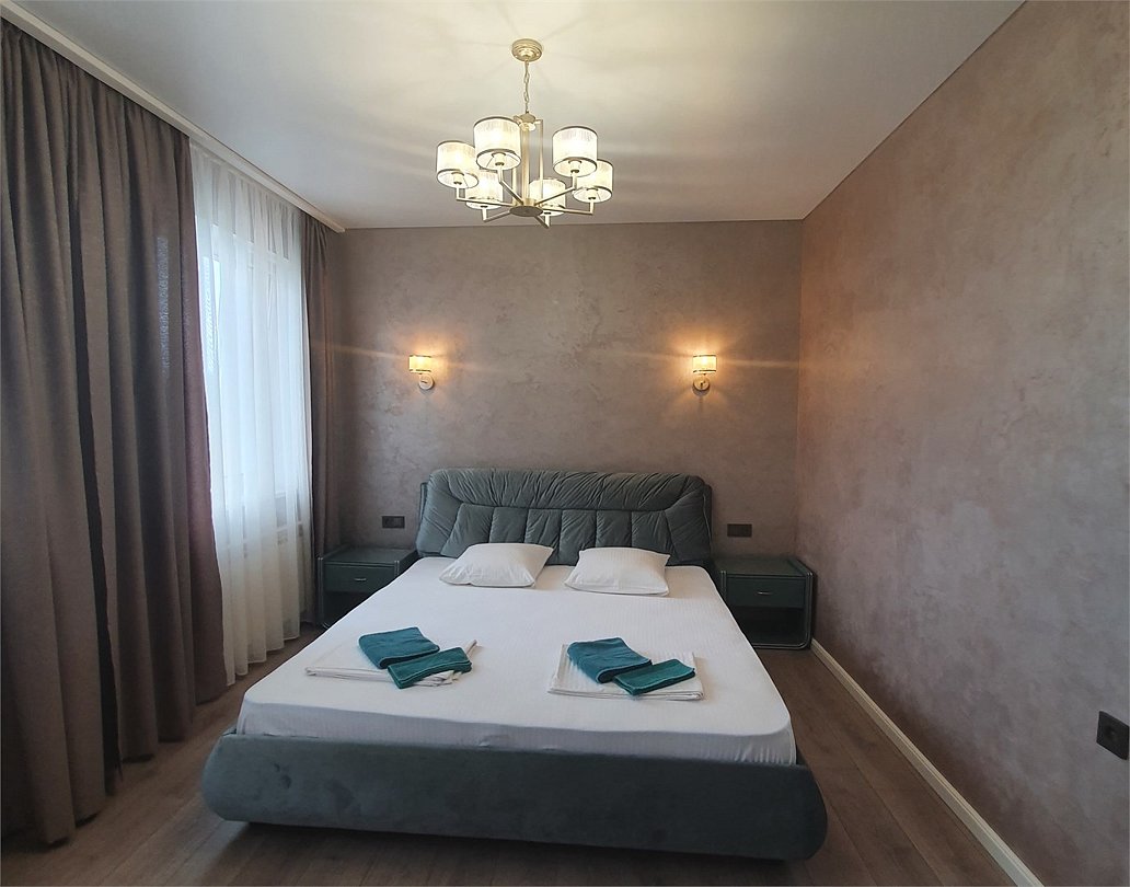 Двухкомнатный номер с балконом и без, средней площадью 30-40 кв.м., санузел совмещенный в номере. Мебель в номере: двуспальная и две односпальные кровати (или 2х спальный диван), прикроватные тумбы, шкаф, туалетный стол, стол столовый с мини кухней, обувница с зеркалом и другая мебель. Техника: кондиционер, холодильник, телевизор (в каждой комнате), чайник, микроволновая печь, фен, стиральная машина. Так же в номере присутствуют: подушки и одеяла, постельное белье, полотенца на каждого человека по 2 шт., посуда, набор косметики для душа и т.д.Услуги и удобства