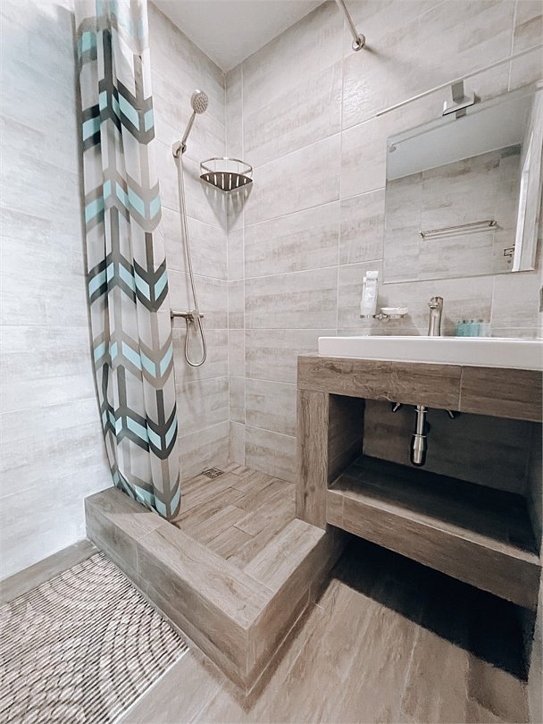 Wi-Fi, холодильник, кондиционер, фен, банные полотенца, пляжные полотенца, косметические средства, двуспальная кровать, две односпальные кровати, тумбы, шкаф для одежды, зеркало, две комнаты, раковина, отдельный вход в номер, душ, плиточное покрытие, вид во двор, туалетный столик, туалетный столик, туалетные средства, туалет, телевизор с плоским экраном, москитная сетка, гостиничная парфюмерия, номер для некурящих, пуфик, общественный бассейнВ номере