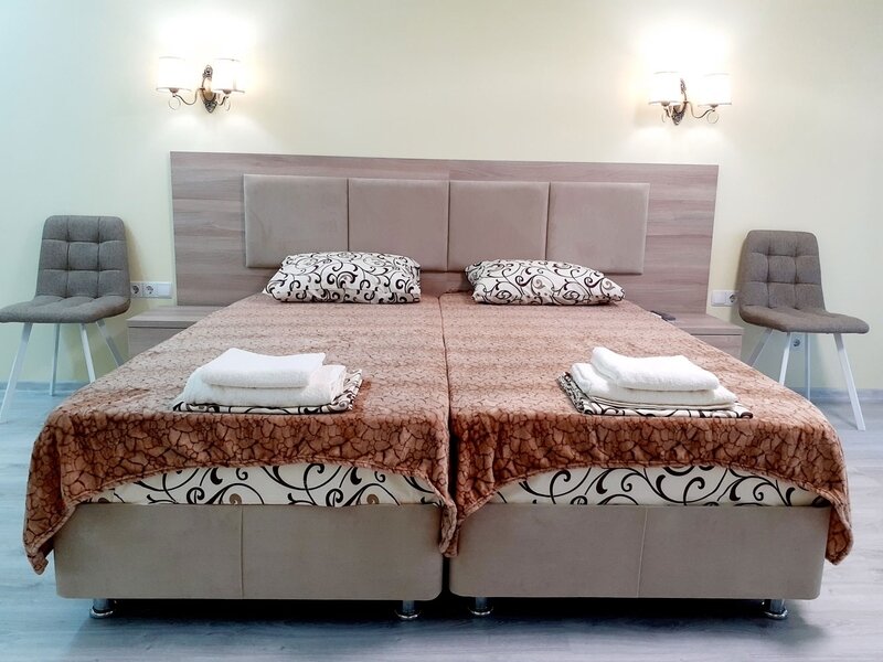 Двухместный номер с двуспальной кроватью или двумя односпальными кроватями и одним дополнительным местом. Универсальные спринг-боксы и диван-кровать.