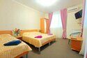 Семейный номер с 1 двуспальной и 1 двухъярусной кроватью. Прекрасно подходит для размещения 1-4 человек, оборудован всем необходимым для комфортного проживания. В номере предусмотрены: шкаф для одежды, зеркало, кондиционер, телевизор, Wi-Fi, холодильник, чайник, полотенца, санузел. ЗАБРОНИРОВАТЬ НОМЕР С БАЛКОНОМ МОЖНО ТОЛЬКО ПО ТЕЛЕФОНУ, ПРИ НАЛИЧИИ СВОБОДНЫХ! На этаже расположены: гладильная доска и утюг, микроволновая печь, кулер с водой (в летнее время). Предоставляется стирка за дополнительную плату. На территории гостевого дома имеется общая парковка с ограниченным числом парковочных мест. Бронирование мест не предусмотрено и невозможно.Услуги и удобства