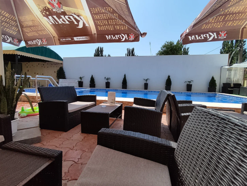 Тип бассейна: открытый бассейнВода в бассейне: подогреваемый бассейнРядом с бассейном: зонтикиПериод работы: от 10:00 до 22:00, летний сезонДетская зона бассейна