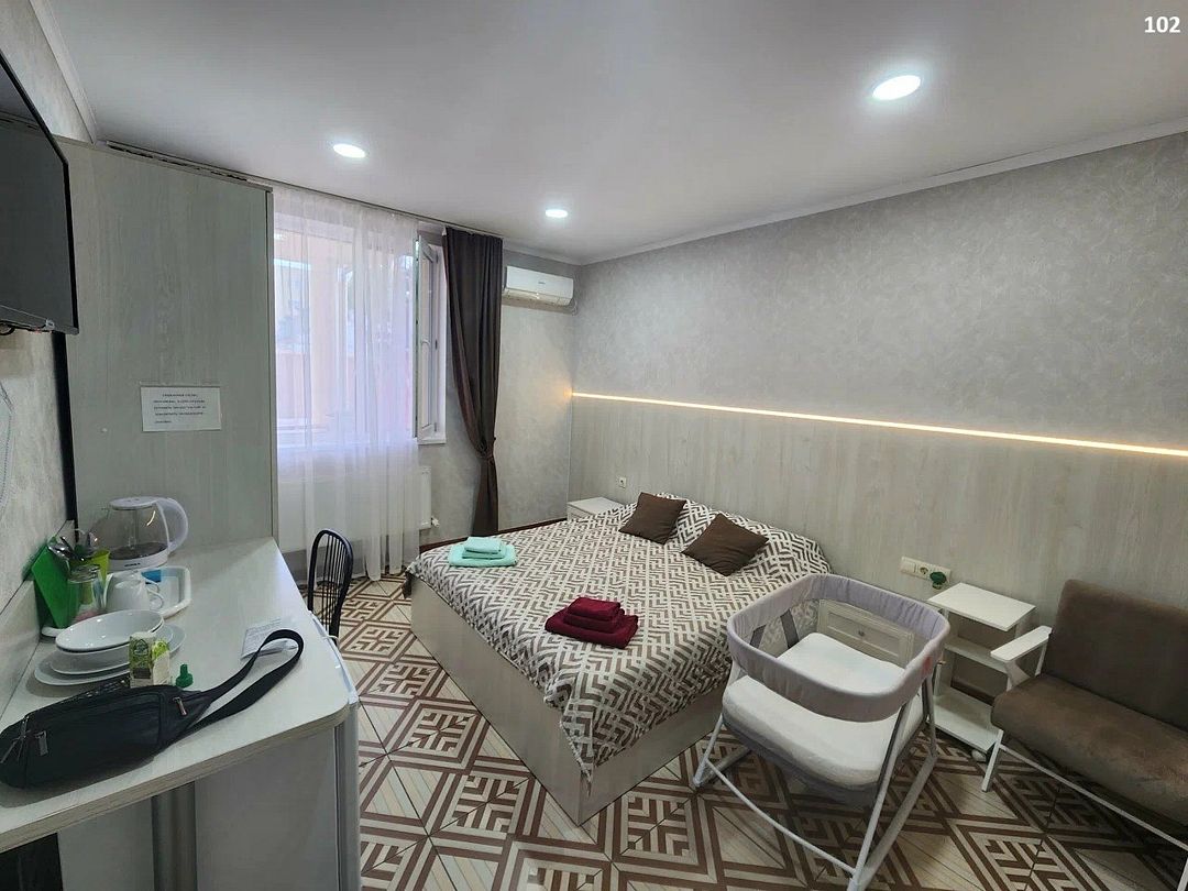 Путешествие с семьейФеодосияОтдыхали в этом отеле 2 суток, нормально. Номер чистый,есть интернет.мебель хорошая.особенно кровать.есть чайник,кружки. Недалеко от центра, можно спокойно посмотреть город. Выбирались каждый лень. Море мне не понравилось,мы уехали в Береговое.
