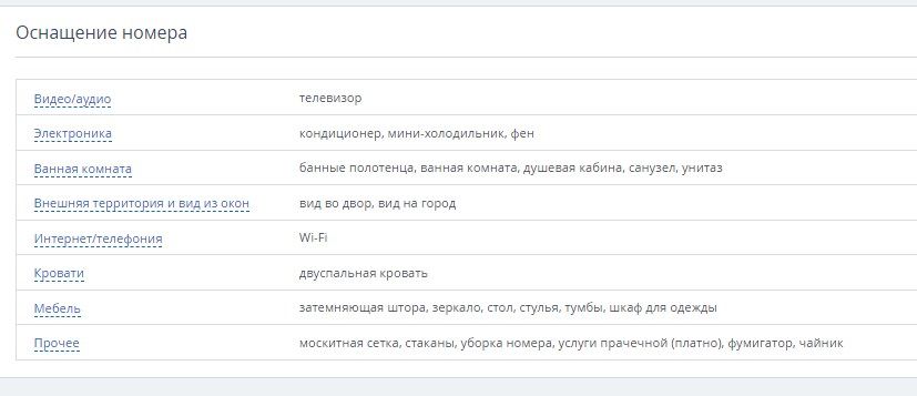 - проживание в номере выбранной категории