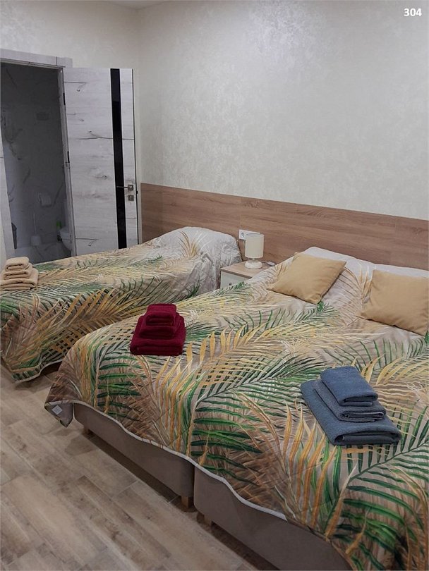 Семейный номер с 1 односпальной кроватью и 1 двуспальной кроватью, оборудован всем необходимым для комфортного проживания. Возможно размещение одного ребенка в возрасте от 0-4 лет без предоставления места. В номере предусмотрены: шкаф для одежды, зеркало, кондиционер, телевизор, Wi-Fi, холодильник, чайник, полотенца, санузел. 304-305 и 306-307 — смежные номера (между ними есть дверь). На этаже расположены: гладильная доска и утюг, микроволновая печь, кулер с водой (в летнее время). Предоставляется стирка за дополнительную плату. На территории гостевого дома имеется общая парковка с ограниченным числом парковочных мест. Бронирование мест не предусмотрено и невозможно.Услуги и удобства