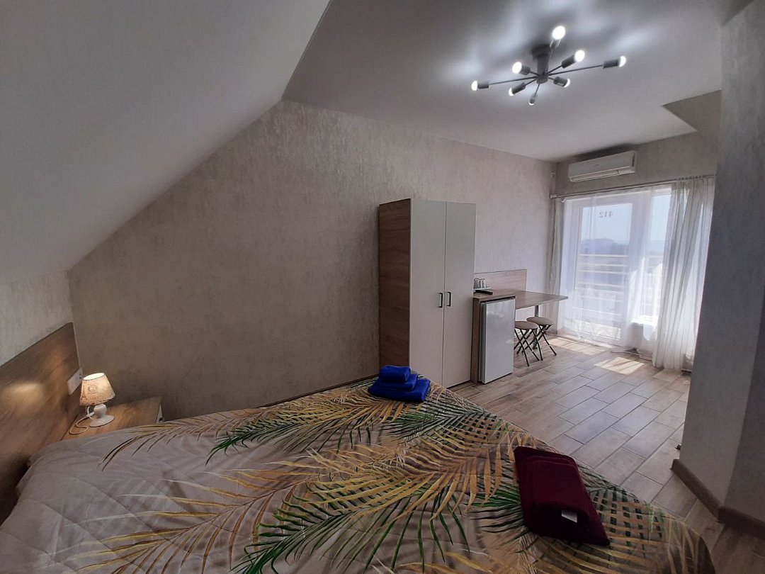 Номер с двуспальной кроватью на 4 этаже, подходит для 1-2 человек, оборудован всем необходимым для комфортного проживания. В номере предусмотрены: шкаф для одежды, зеркало, кондиционер, телевизор, Wi-Fi, холодильник, чайник, полотенца, санузел. ЗАБРОНИРОВАТЬ НОМЕР С БАЛКОНОМ МОЖНО ТОЛЬКО ПО ТЕЛЕФОНУ, ПРИ НАЛИЧИИ СВОБОДНЫХ! На этаже расположены: гладильная доска и утюг, микроволновая печь, кулер с водой (в летнее время). Предоставляется стирка за дополнительную плату. На территории гостевого дома имеется общая парковка с ограниченным числом парковочных мест. Бронирование мест не предусмотрено и невозможно.Услуги и удобства