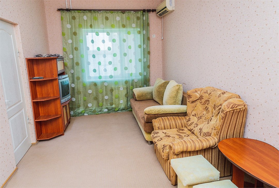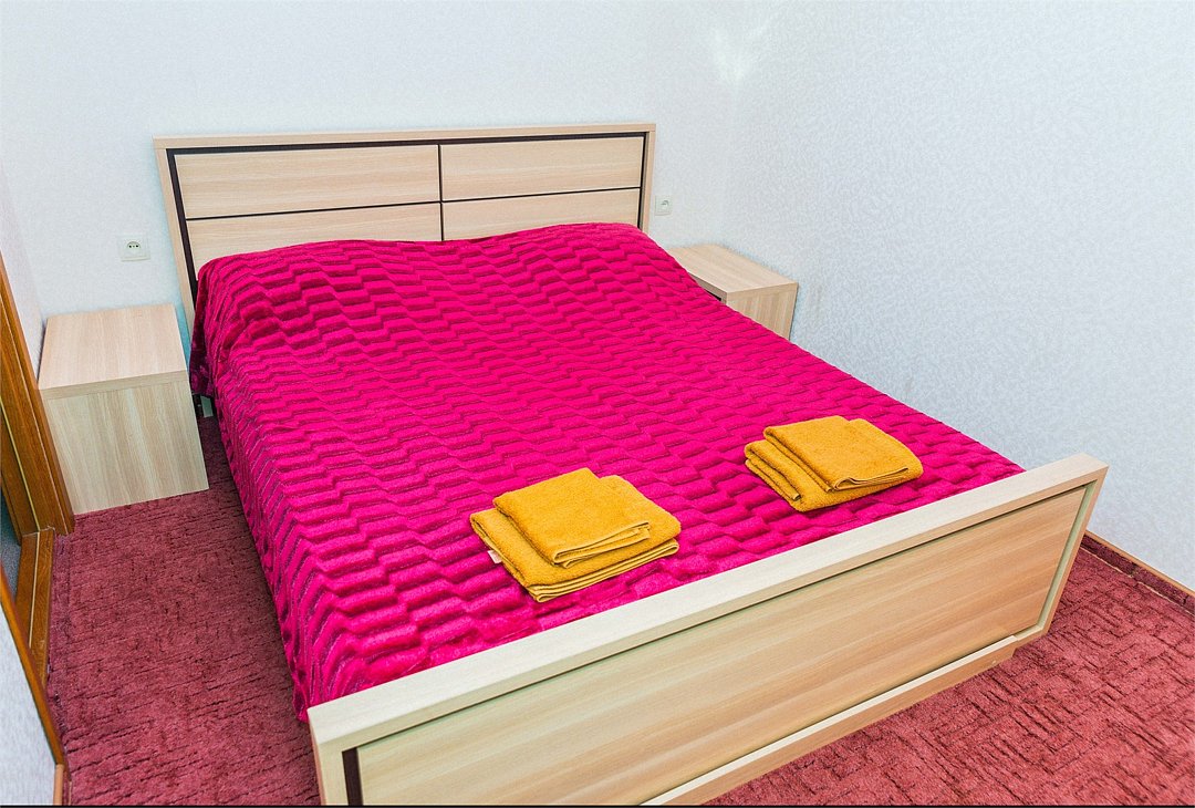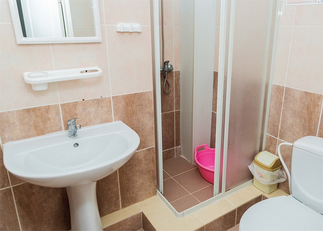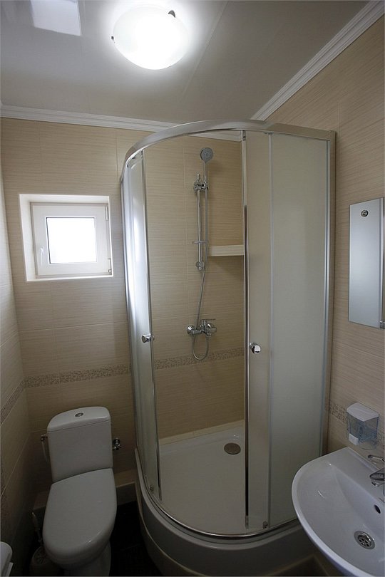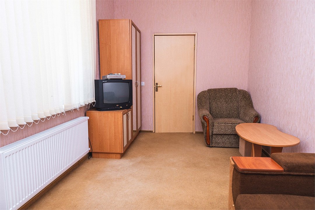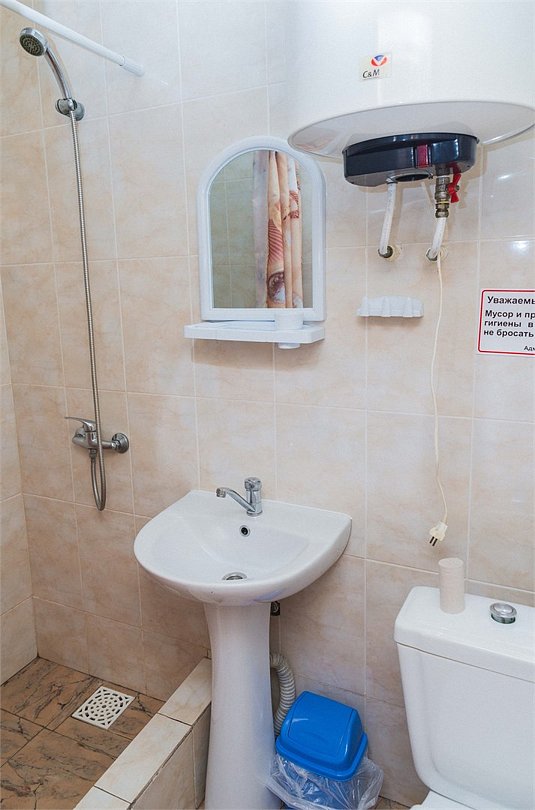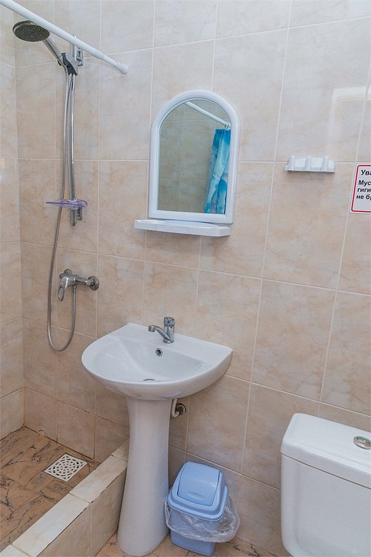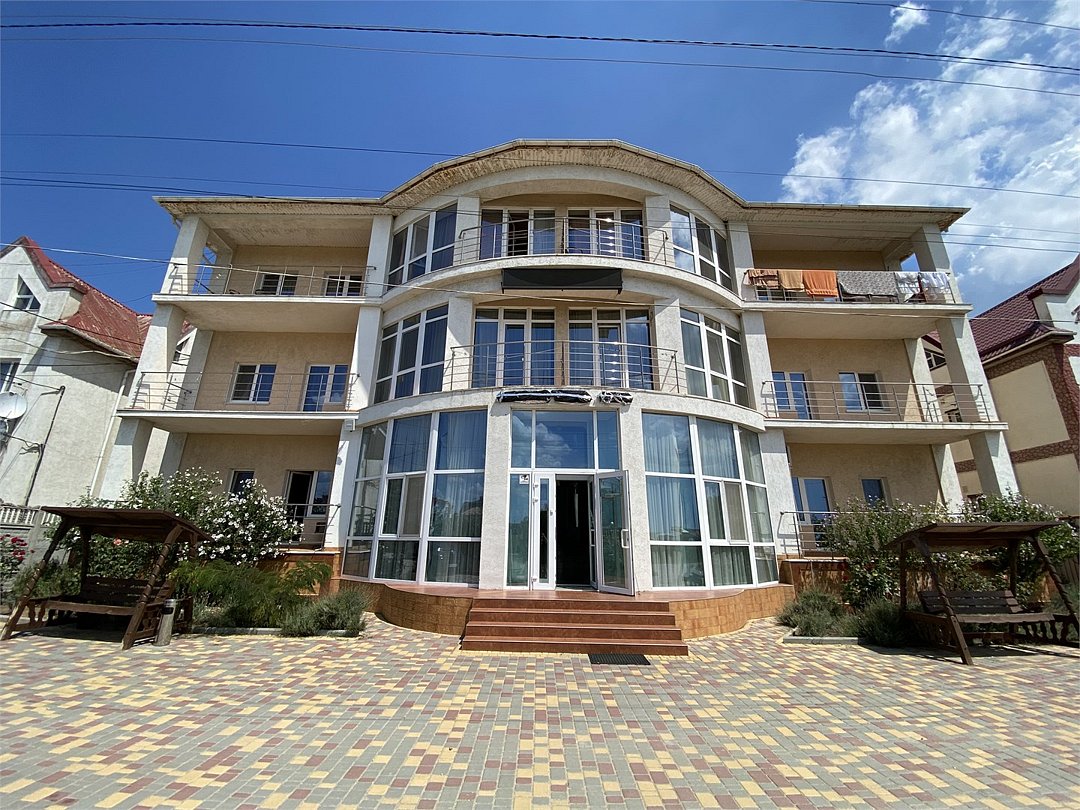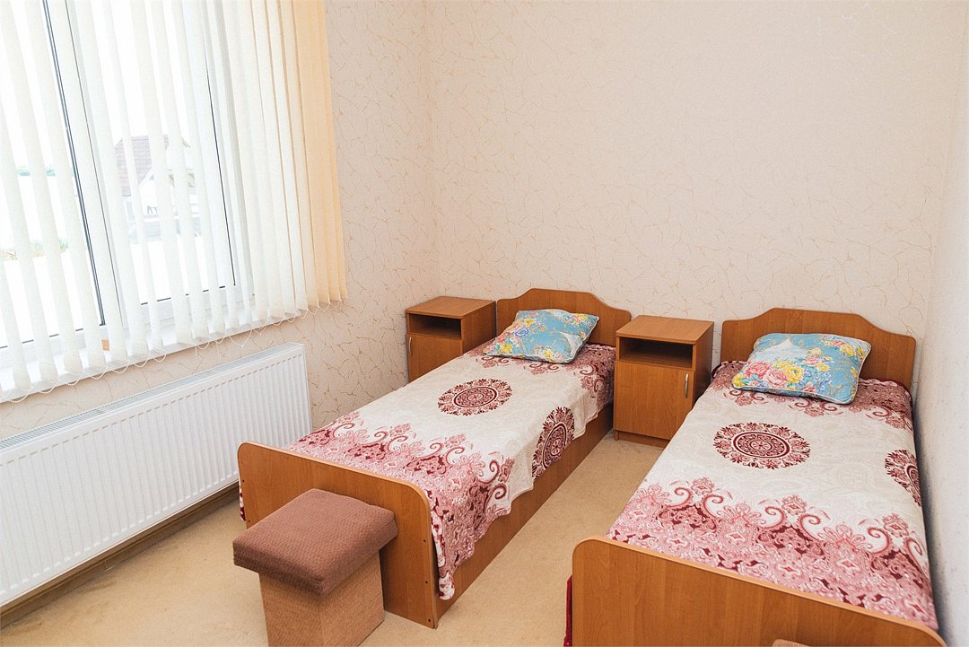 три односпальные кровати; шкаф для одежды; зеркало во весь рост; санузел; кондиционер; телевизор; спутниковое ТВ; общий холодильник на этаже для 3х номеров половое покрытие ковролин ; уборка номера через день по требованию; смена белья через 5 дней; выдается комплект полотенец; выдается два полотенце для пляжа выдается одно покрывало для пляжа бесплатная автостоянка; москитные сетки на окнах; Бесплатная охраняемая автостоянка; Бесплатное пользование WI-FI; Бассейн с морской водой с подогревом.Услуги и удобства