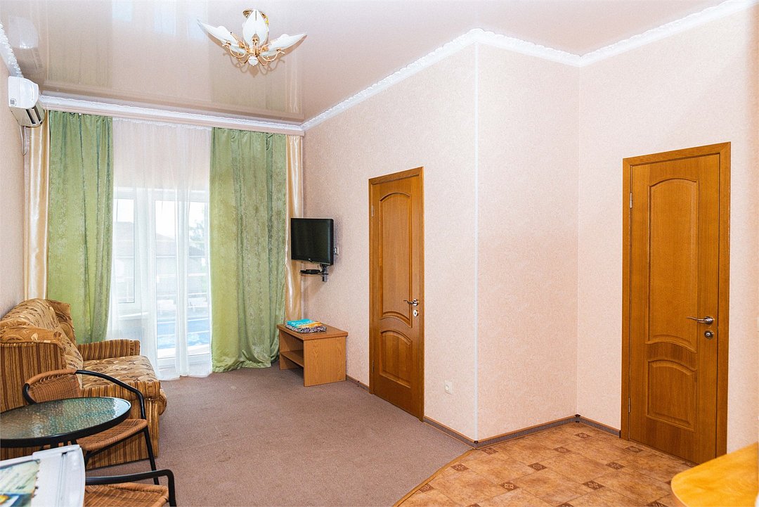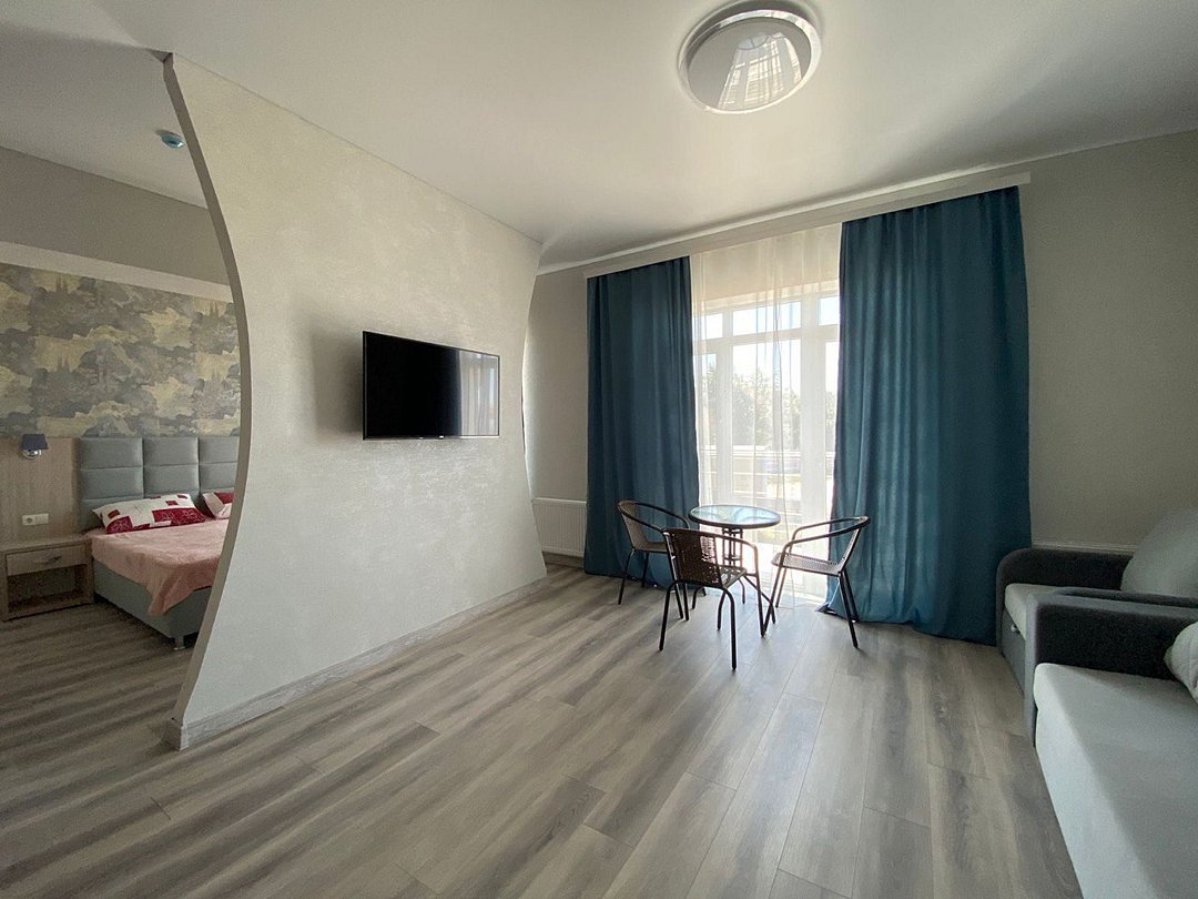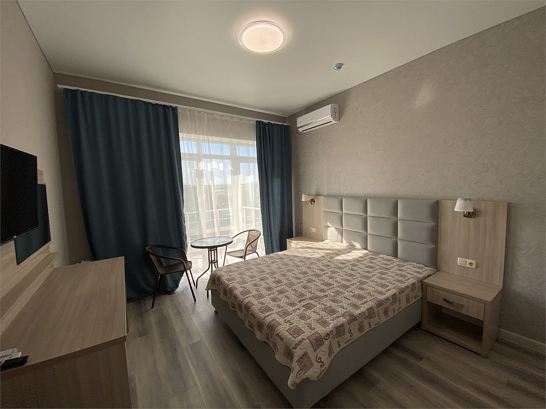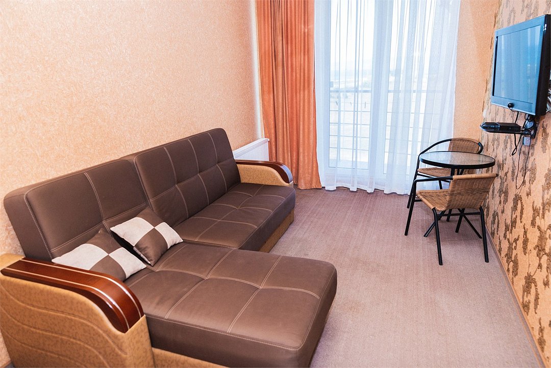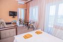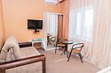 Элегантно оформленные номера Люкс, площадью 32 км м, с видом на море . Каждый номер разделен на спальную зону с одной большой кроватью и зону отдыха. В номере есть: ванная комната с душевой кабиной, раскладной мягкий уголок в гостиной, одна большая кровать в спальной комнате, звуконепроницаемые окна, имеется балкон, на балконе мебель из ротанга. В номере телевизора с плоским экраном, кондиционер, микроволновая печь, приборы для приготовления чая или кофе, Wi-Fi. Ранний заезд и поздний выезд по требованию.Услуги и удобства