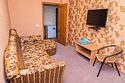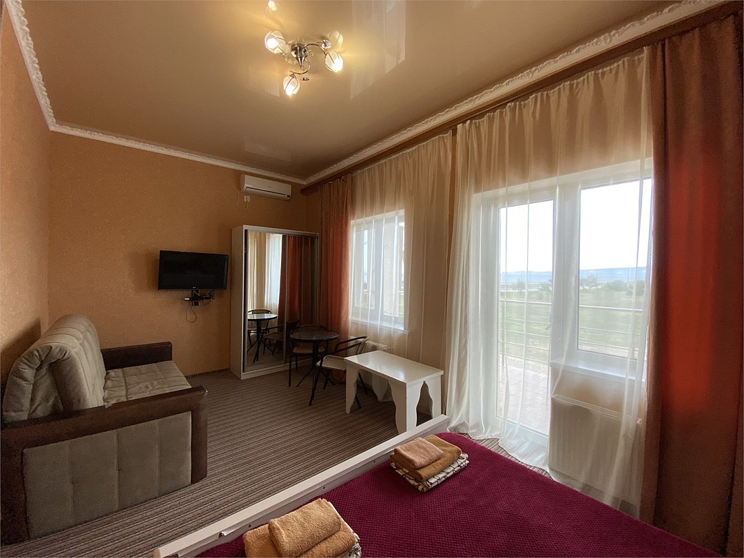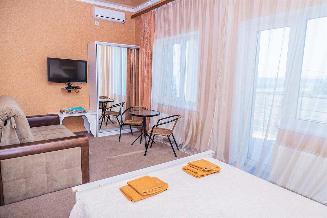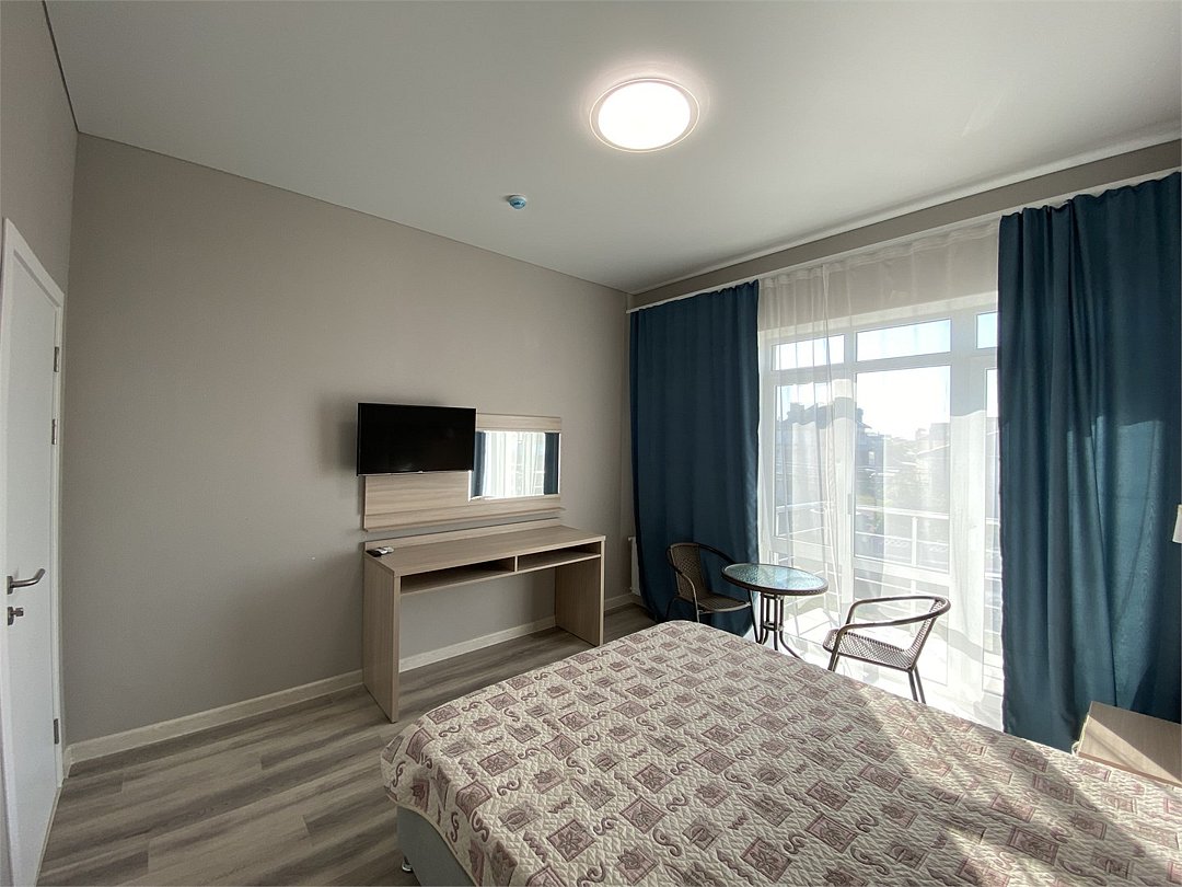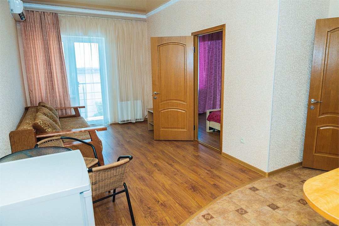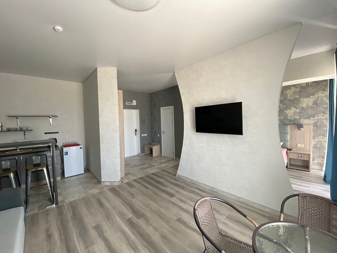 Элегантно оформленные номера Люкс, площадью 32 км м, с видом на море . Каждый номер разделен на спальную зону с одной большой кроватью и зону отдыха. В номере есть: ванная комната с душевой кабиной, раскладной мягкий уголок в гостиной, одна большая кровать в спальной комнате, звуконепроницаемые окна, имеется балкон, на балконе мебель из ротанга. В номере телевизора с плоским экраном, кондиционер, микроволновая печь, приборы для приготовления чая или кофе, Wi-Fi. Ранний заезд и поздний выезд по требованию.Услуги и удобства