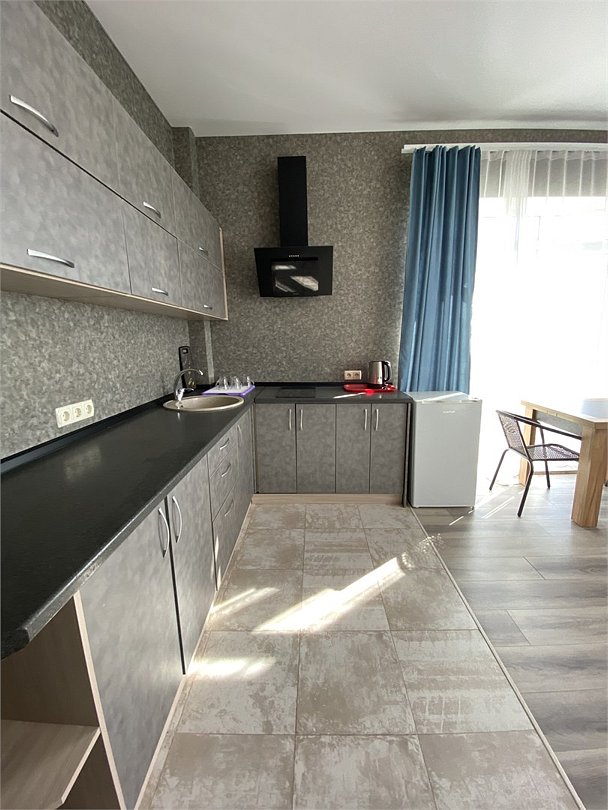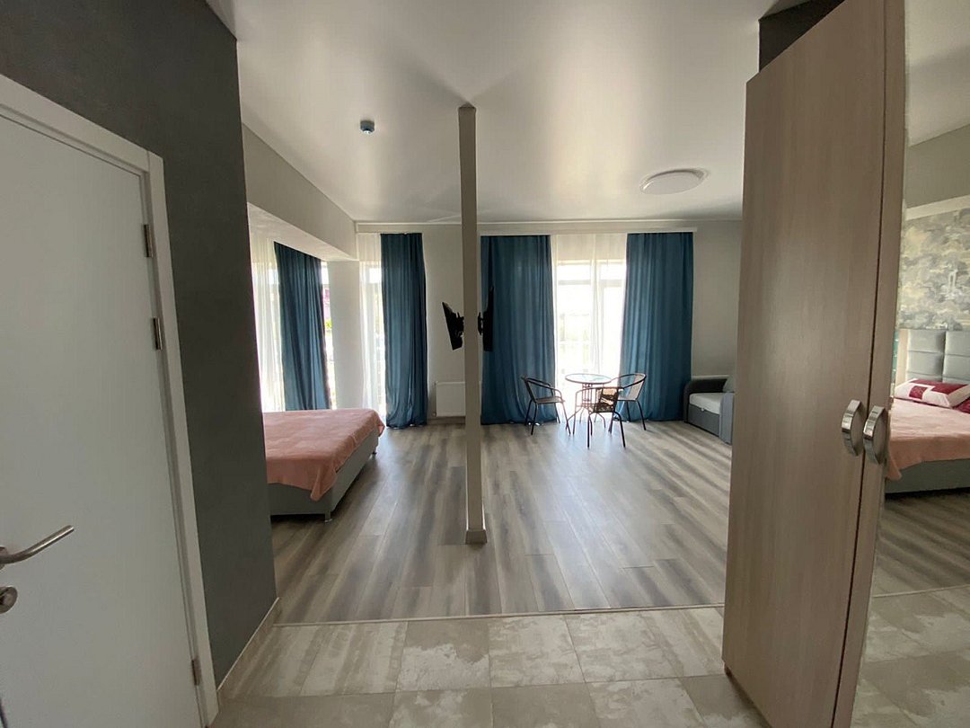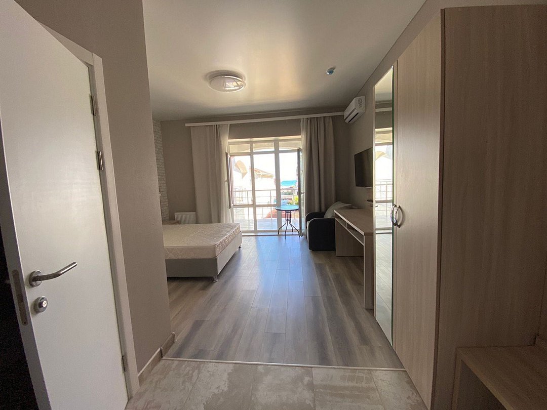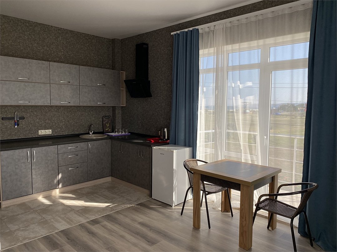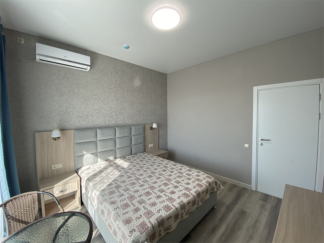 Элегантно оформленные 2х комнатные номера с c кухней, санузлон, коридорчиком - площадью 40 кв.м, с видом на море и на озеро. В каждой комнате телевизор с плоским экраном, кондиционер и балкон. В гостиной комнате встроенный кухонный гарнитур с индукционной плитой, холодильником и необходимой посудой для приготовления пищи. По заявки можно поставить кровать для новорожденного.Услуги и удобства