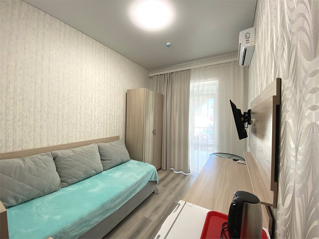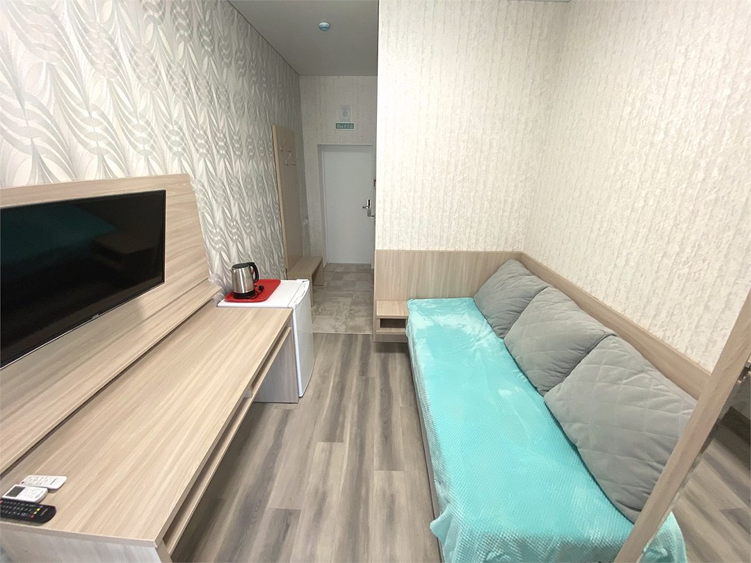 Одноместный номер «Комфорт» Идеальное решение для индивидуального отдыха или деловой поездки — компактный, но продуманный до мелочей номер, где каждый элемент создаёт атмосферу уюта и функциональности. Почему стоит выбрать этот номер: • оптимальное использование пространства — всё необходимое под рукой; • стильный современный дизайн; • полный набор удобств для комфортного проживания. В номере предусмотрено: • полутора спальная кровать; • балкон; • кондиционер; • телевизор; • мини холодильник; • письменный стол; • шкаф для одежды; • фен; • электрочайник; • постельные принадлежности; Здесь вы найдёте баланс между компактностью и функциональностью — всё, что нужно для приятного пребывания в отеле.Услуги и удобства