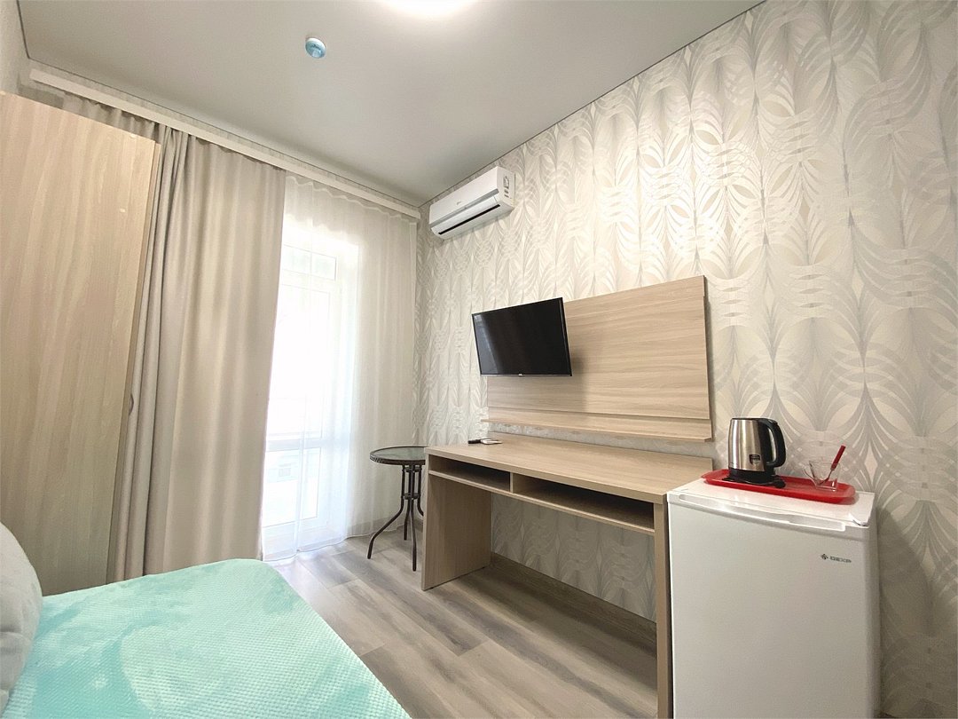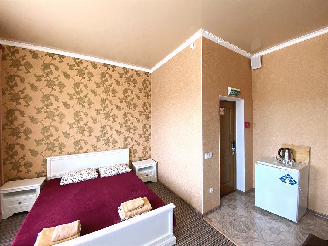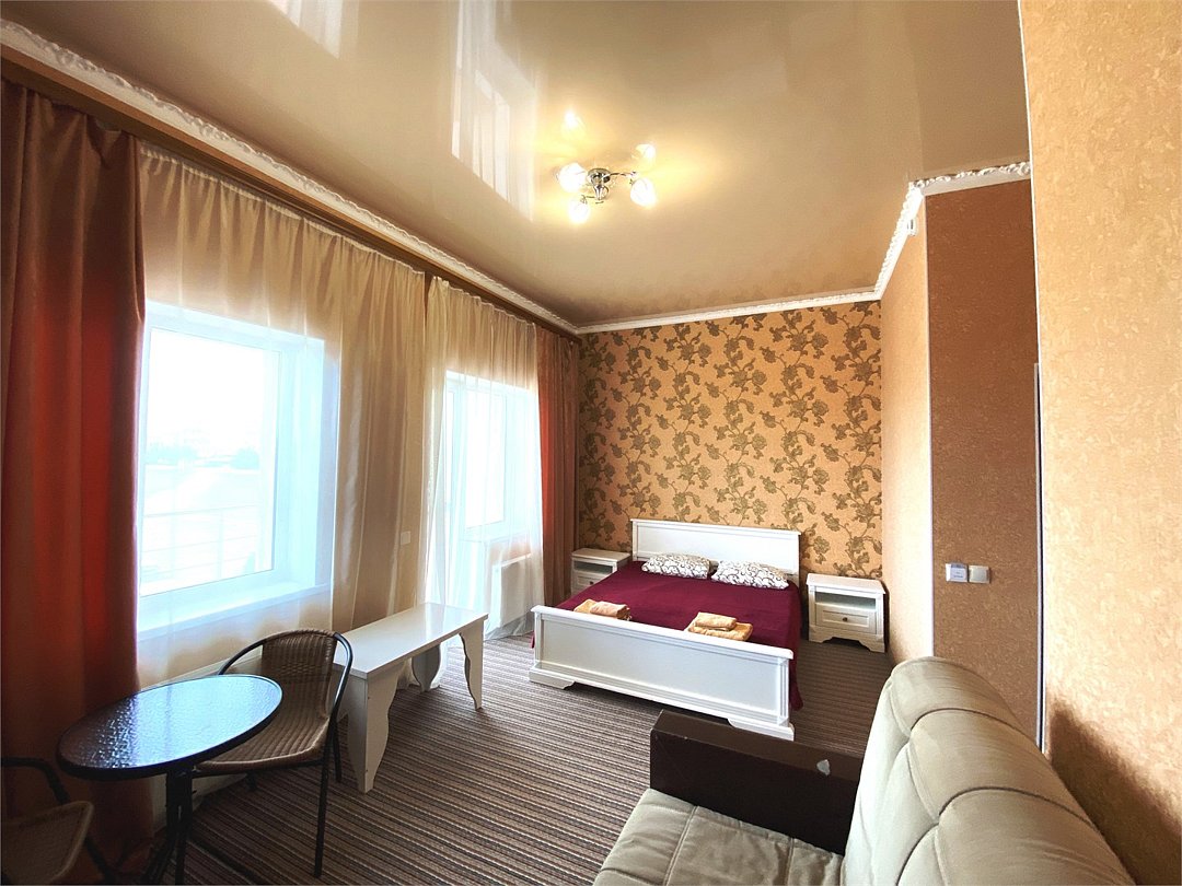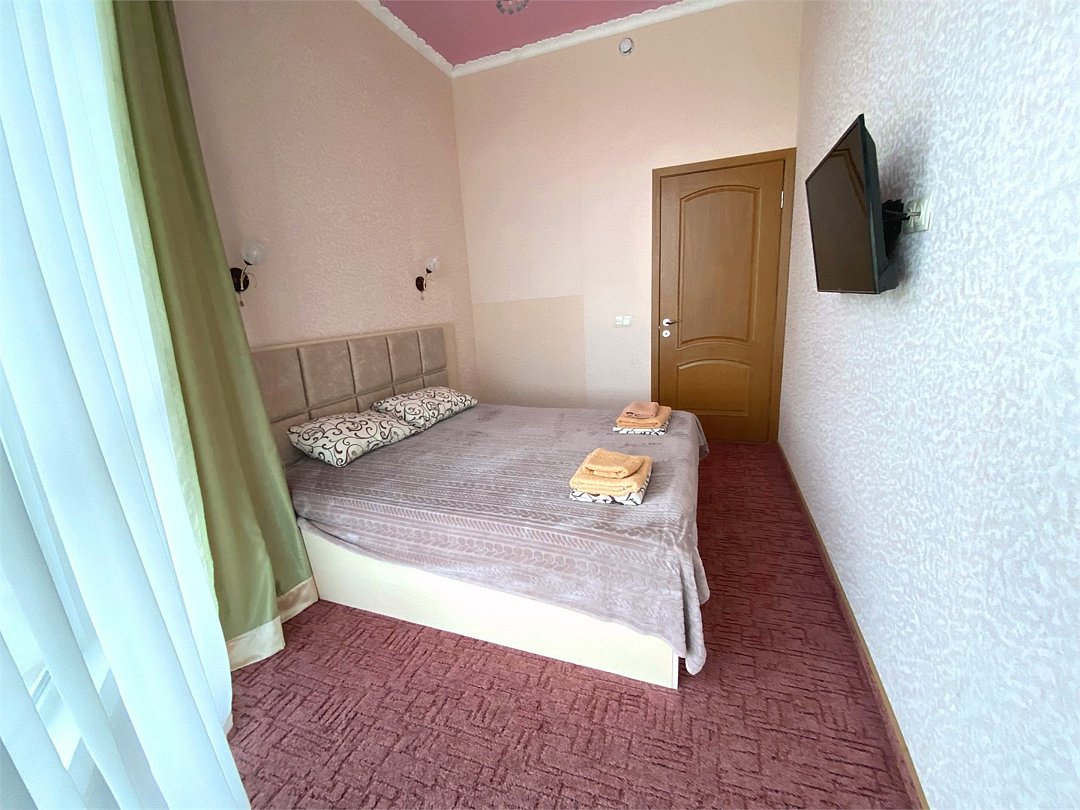 4. Четырёхместный номер «Комфорт» с балконом Светлый и современный номер, идеально подходящий для размещения 2–4 гостей или семьи из четырёх человек. Продуманная планировка, функциональное оснащение и собственный балкон создают все условия для комфортного и приятного пребывания. Почему стоит выбрать этот номер: • достаточно пространства для размещения четырёх человек: двуспальная кровать и двуспальный диван; • собственный балкон — уютное место для отдыха на свежем воздухе, утреннего кофе или вечерних посиделок; • современный дизайн и светлая цветовая гамма, создающие ощущение простора и комфорта; • полный набор удобств для проживания, позволяющий чувствовать себя как дома. В номере предусмотрено: • двуспальная кровать; • двуспальный диван; • кондиционер; • телевизор; • мини холодильник; • шкаф для одежды; • фен; • электрочайник; • постельные принадлежности; • банные принадлежности; Этот номер сочетает в себе функциональность и уют — всё, чтобы ваше пребывание в отеле было максимально комфортным, а воспоминания о нём остались самыми тёплыми.Услуги и удобства